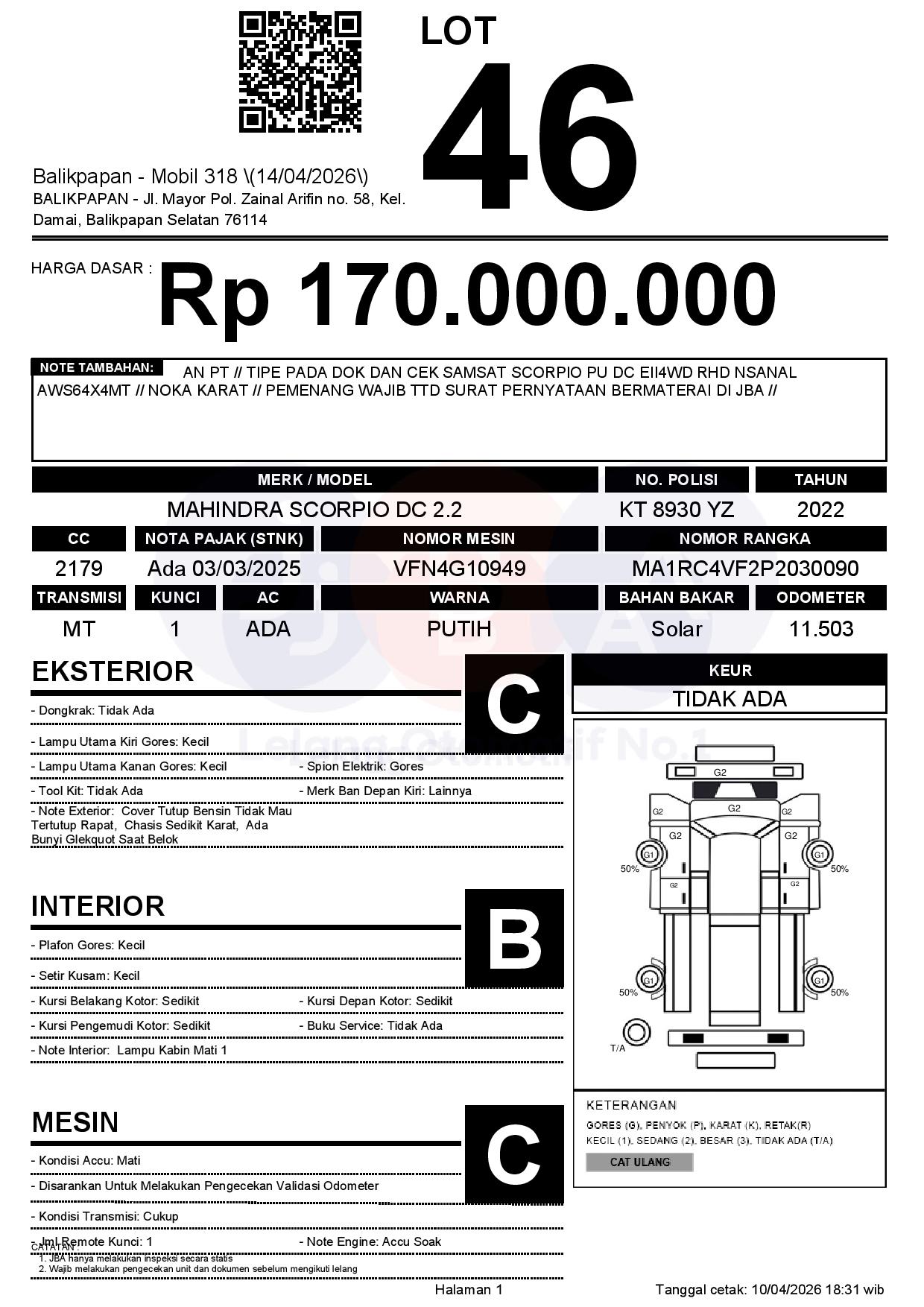 Tanggal Lelang: 14/04/2026 | 13:00 WITA