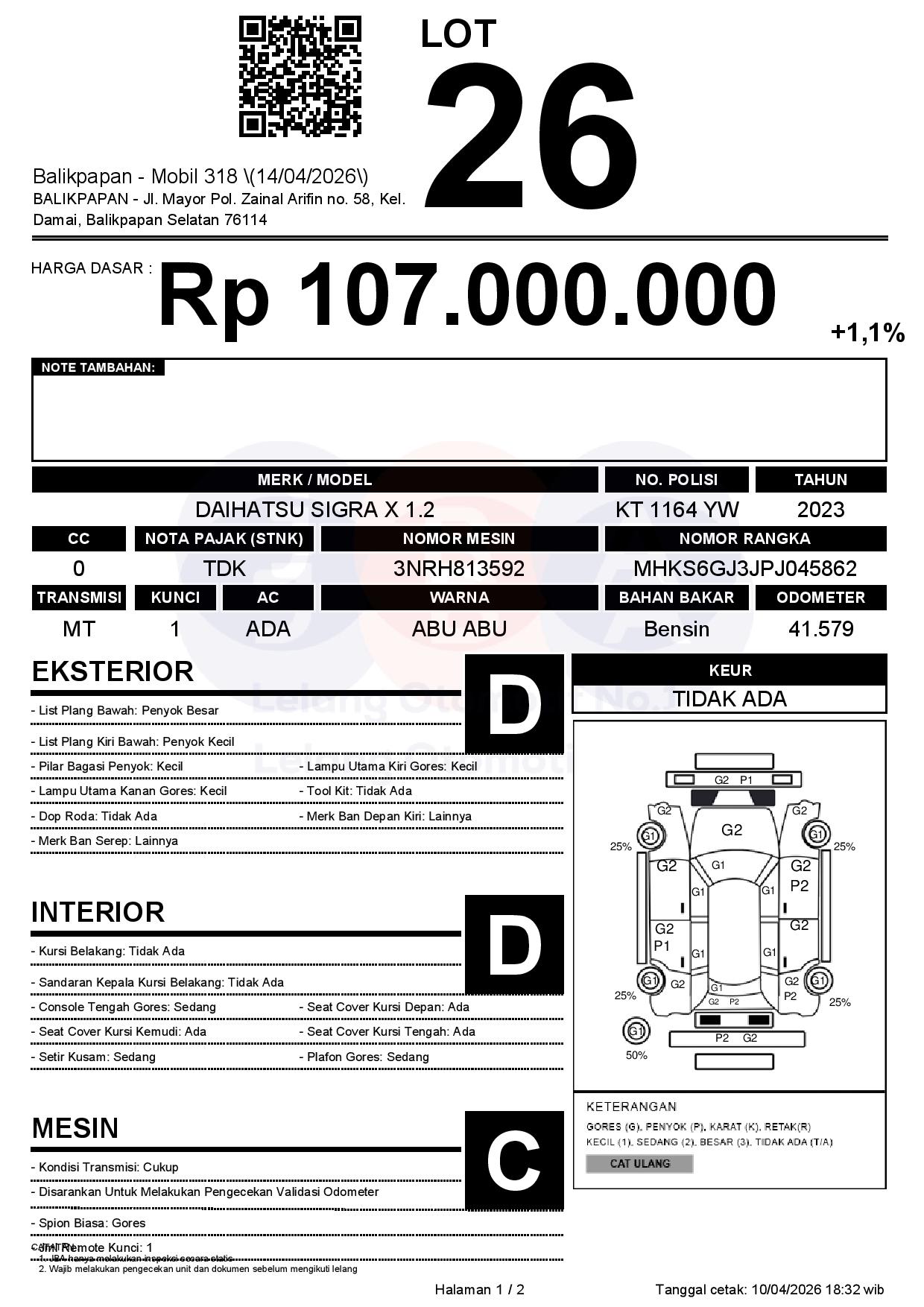 Tanggal Lelang: 14/04/2026 | 13:00 WITA