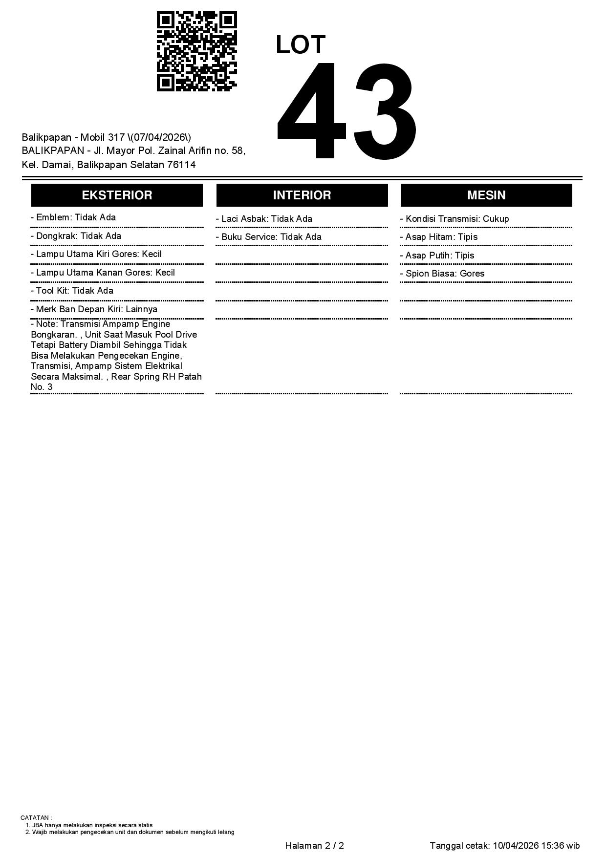 2. Peserta lelang wajib cek unit & dokumen