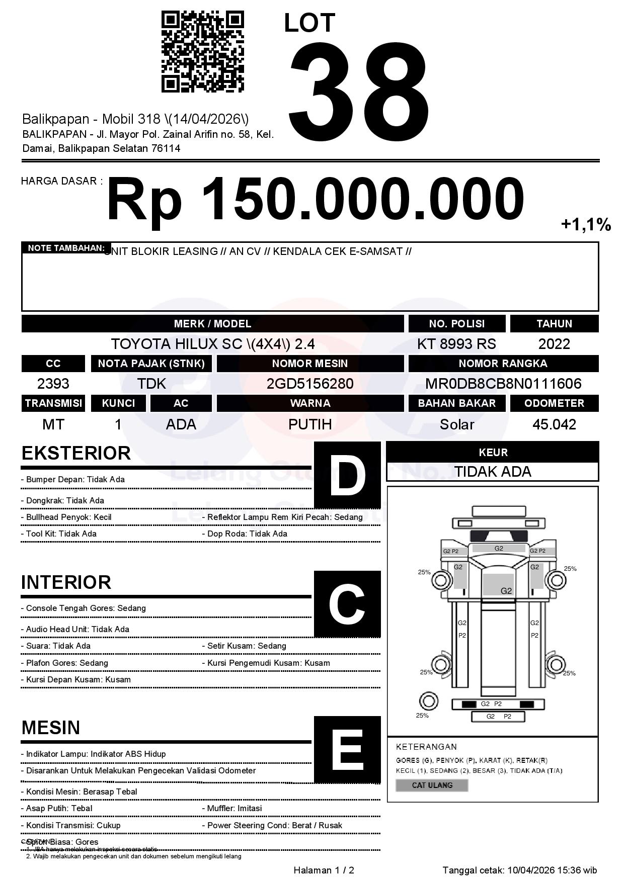 Tanggal Lelang: 14/04/2026 | 13:00 WITA