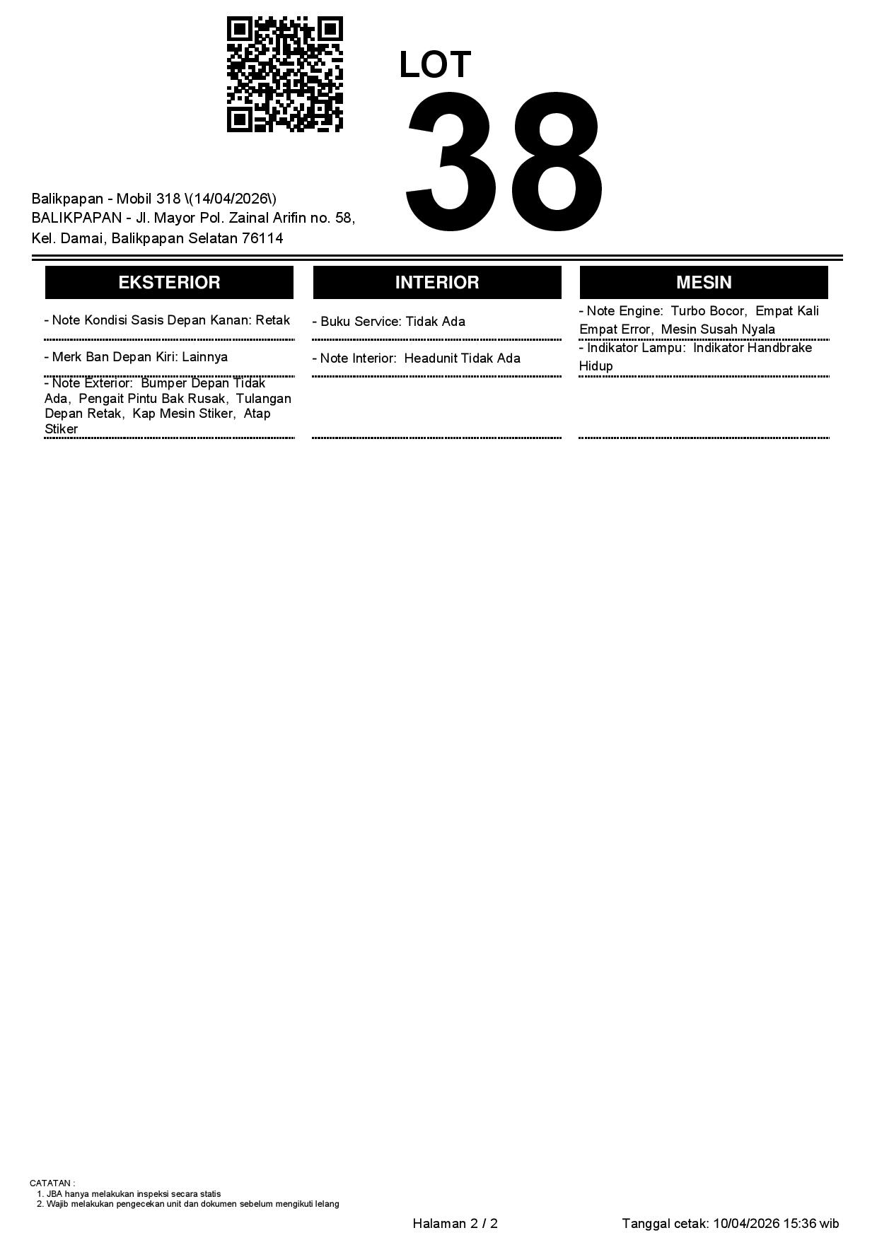 2. Peserta lelang wajib cek unit & dokumen