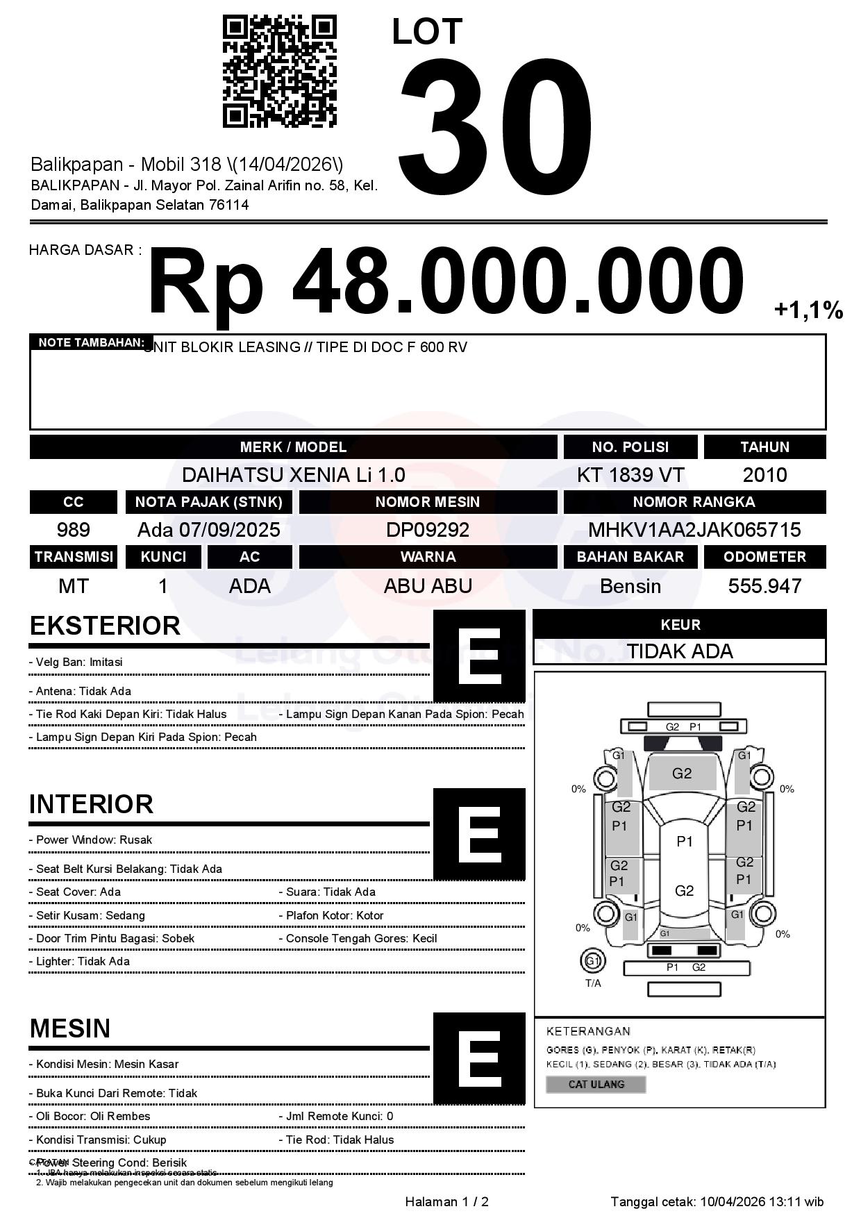 Tanggal Lelang: 14/04/2026 | 13:00 WITA