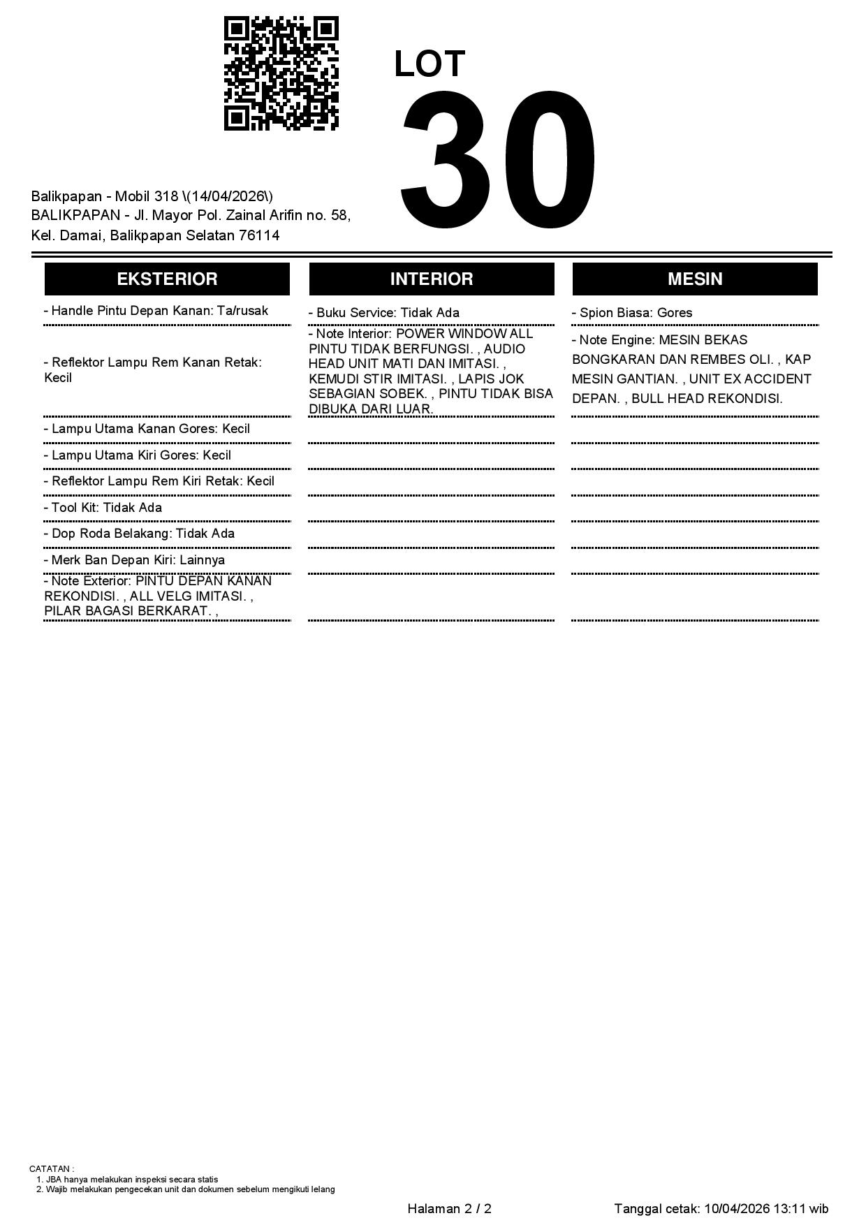 2. Peserta lelang wajib cek unit & dokumen