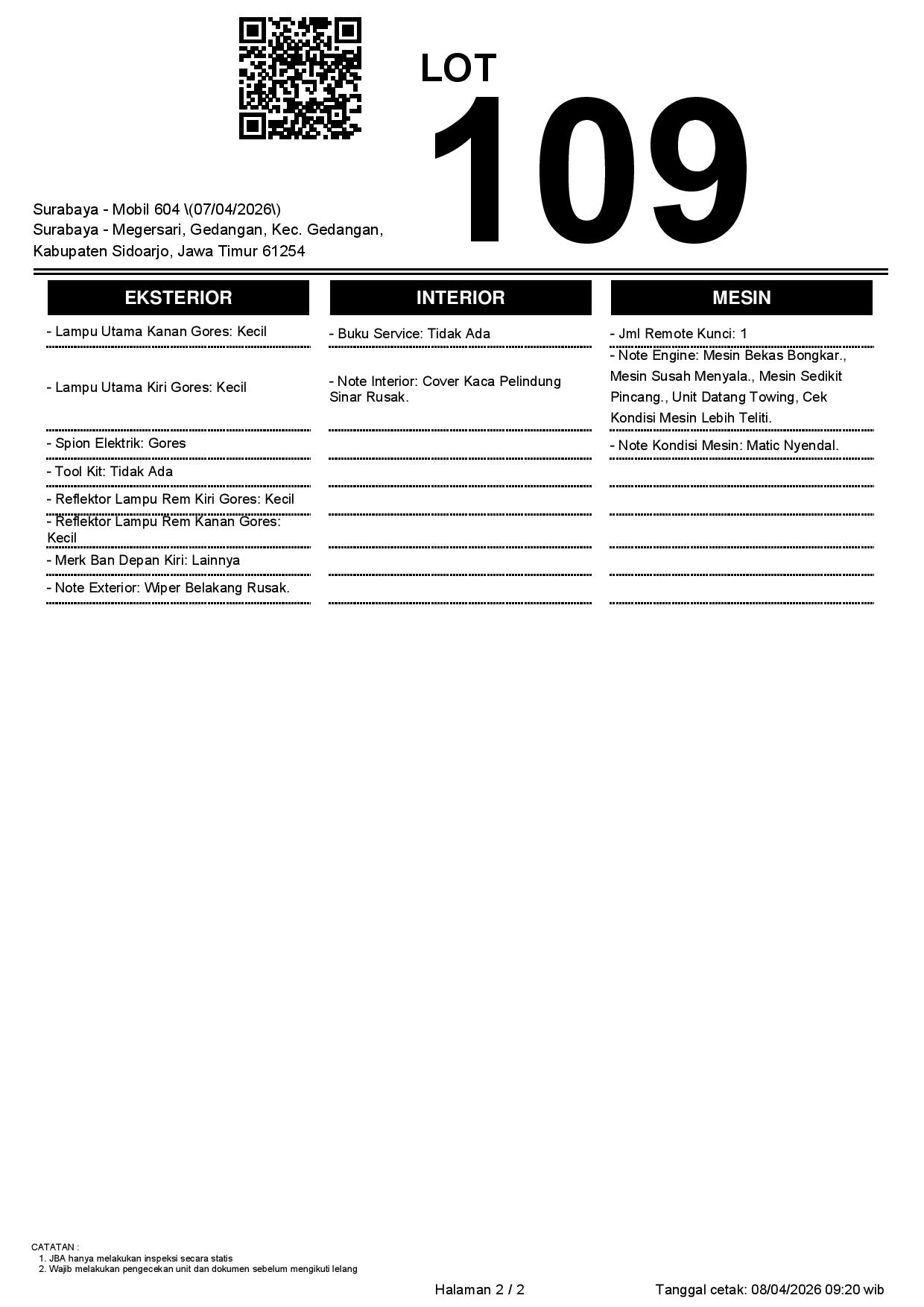 1. Peserta lelang wajib cek unit & dokumen