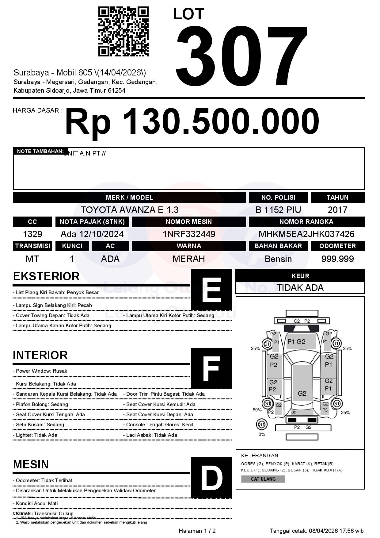 Tanggal Lelang: 14/04/2026 | 13:00 WIB
