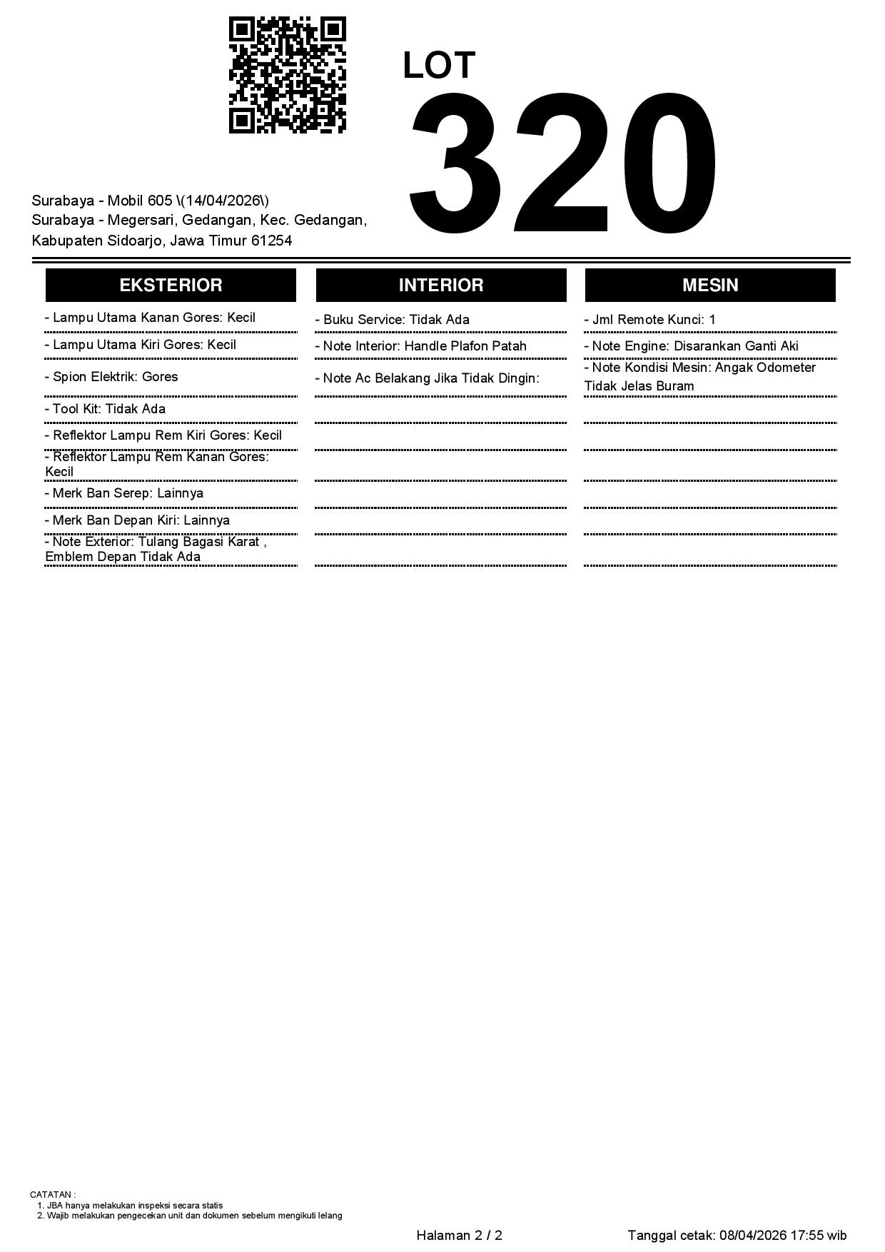1. Peserta lelang wajib cek unit & dokumen