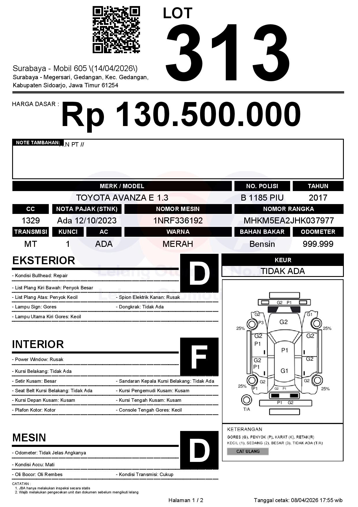 Tanggal Lelang: 14/04/2026 | 13:00 WIB