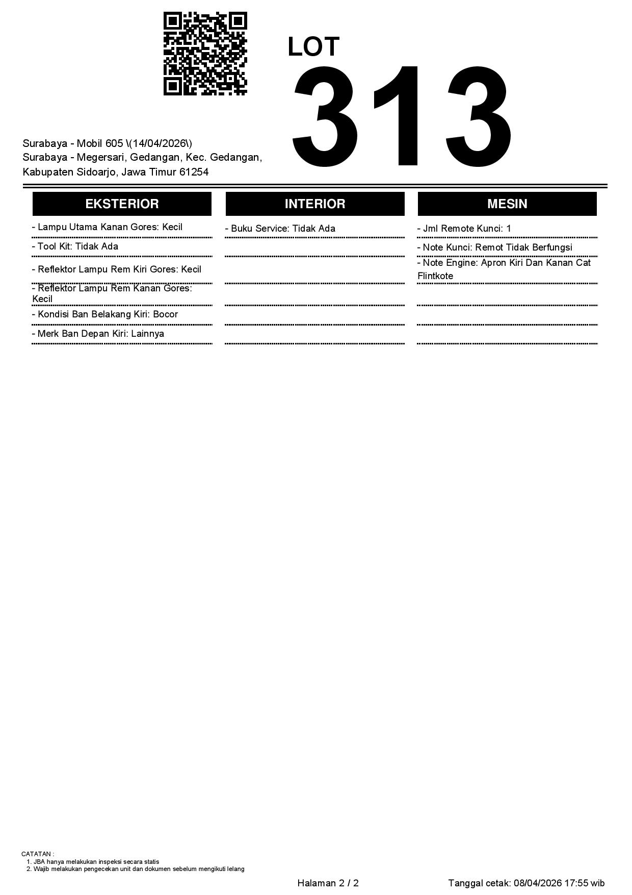 1. Peserta lelang wajib cek unit & dokumen