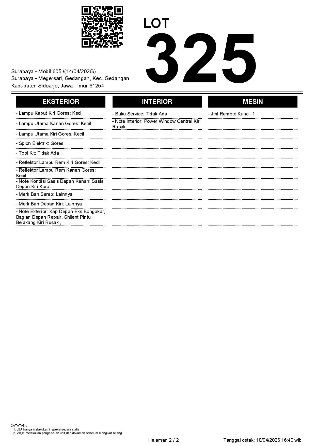 2. Peserta lelang wajib cek unit & dokumen