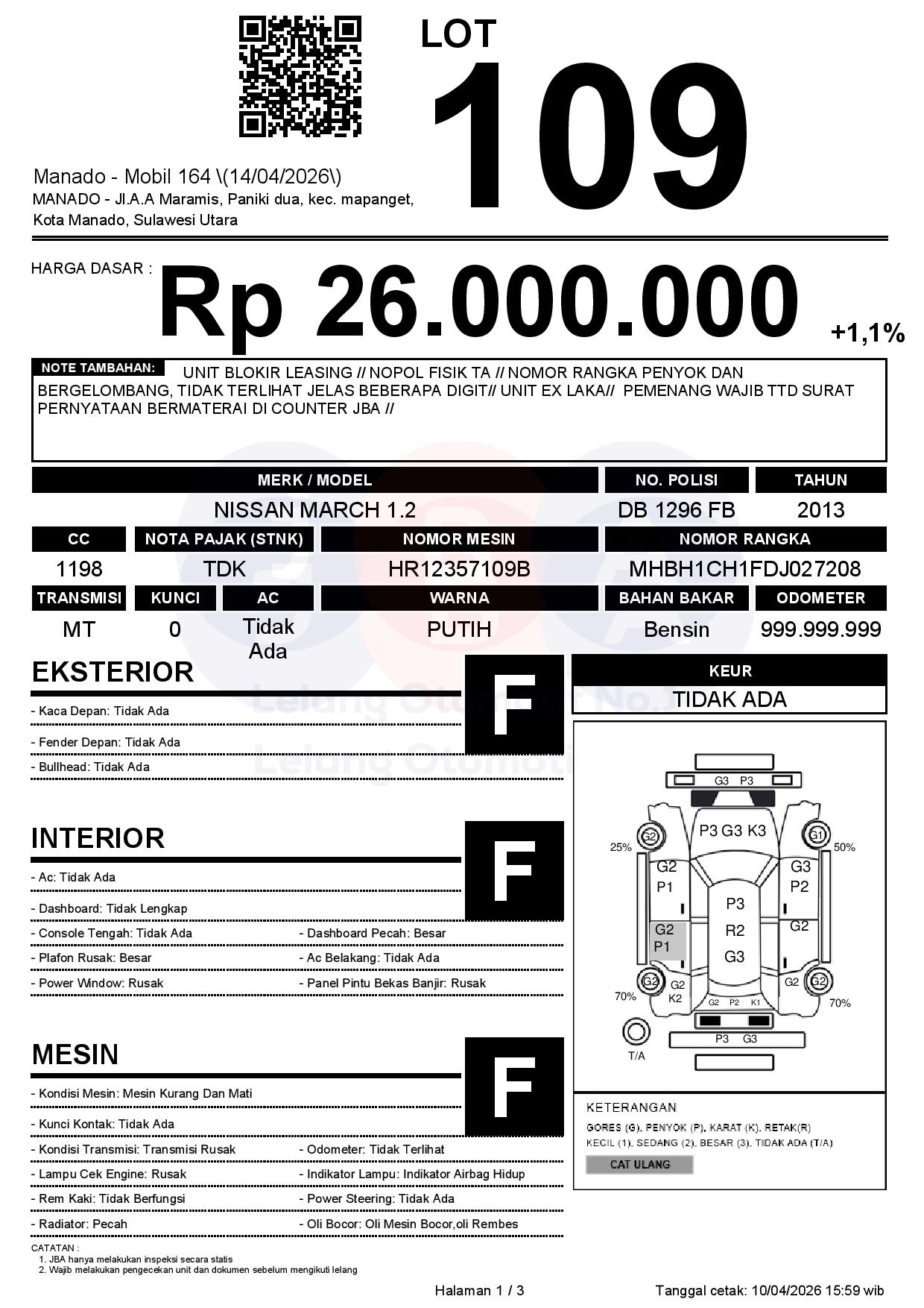 UNIT BLOKIR LEASING // NOPOL FISIK TA // NOMOR RANGKA PENYOK DAN BERGELOMBANG, TIDAK TERLIHAT JELAS BEBERAPA DIGIT// UNIT EX LAKA// PEMENANG WAJIB TTD SURAT PERNYATAAN BERMATERAI DI COUNTER JBA //