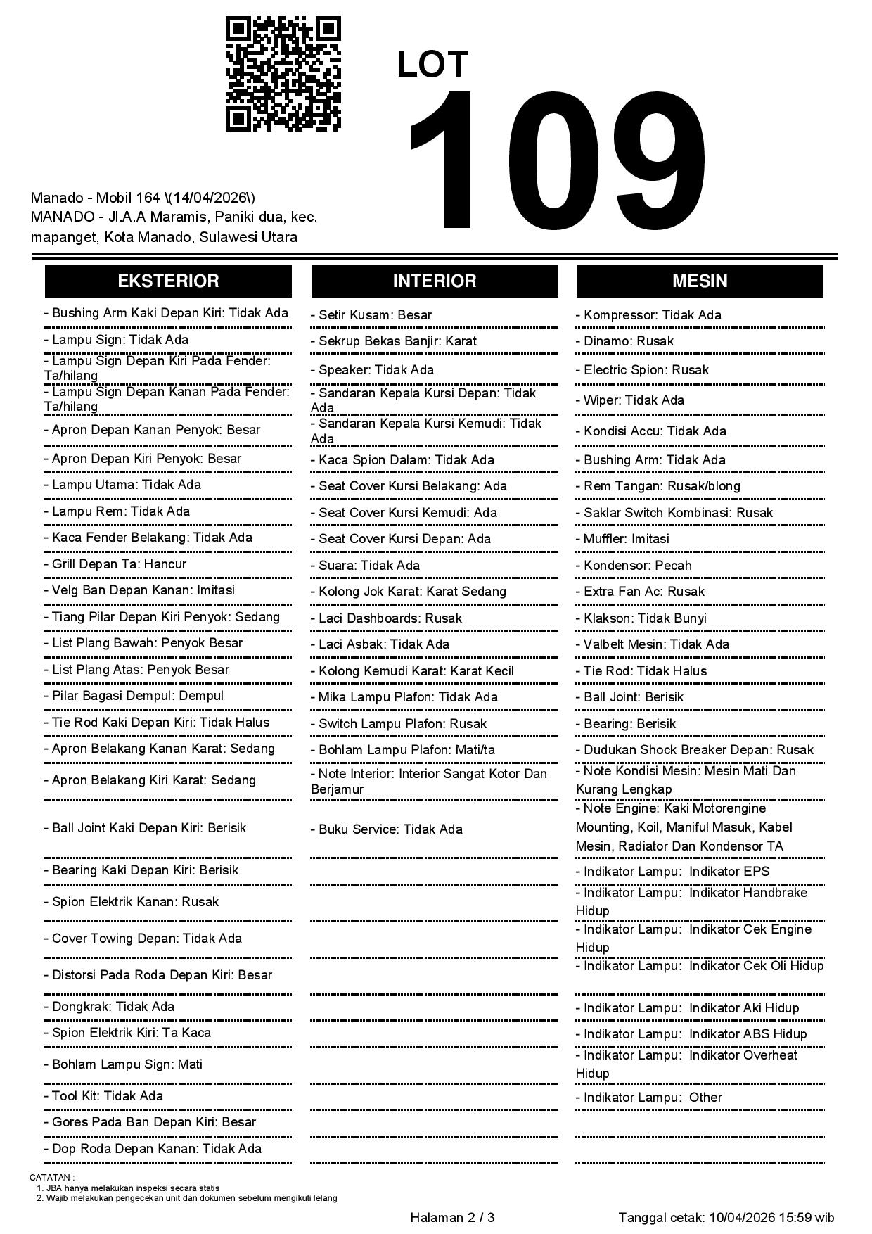 2. Peserta lelang wajib cek unit & dokumen