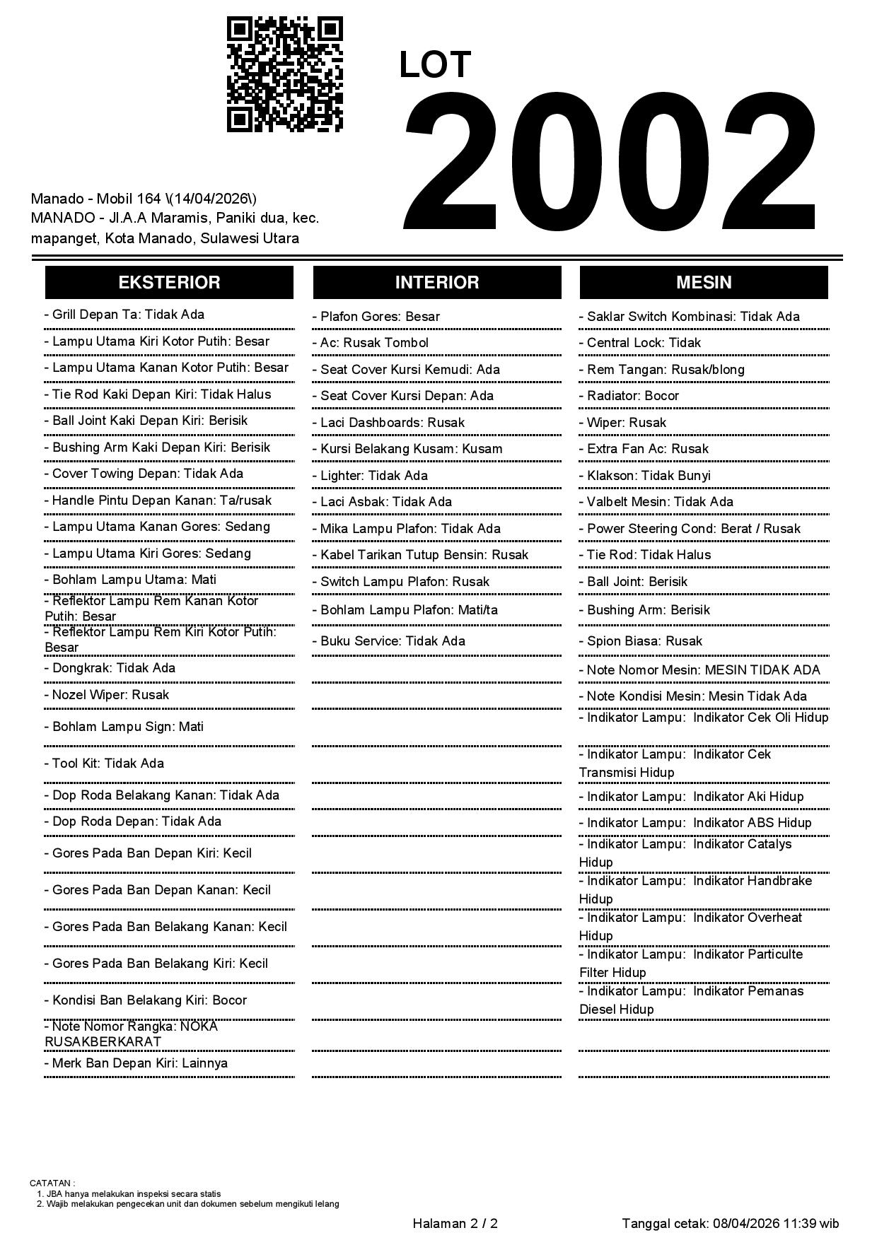 1. Peserta lelang wajib cek unit & dokumen