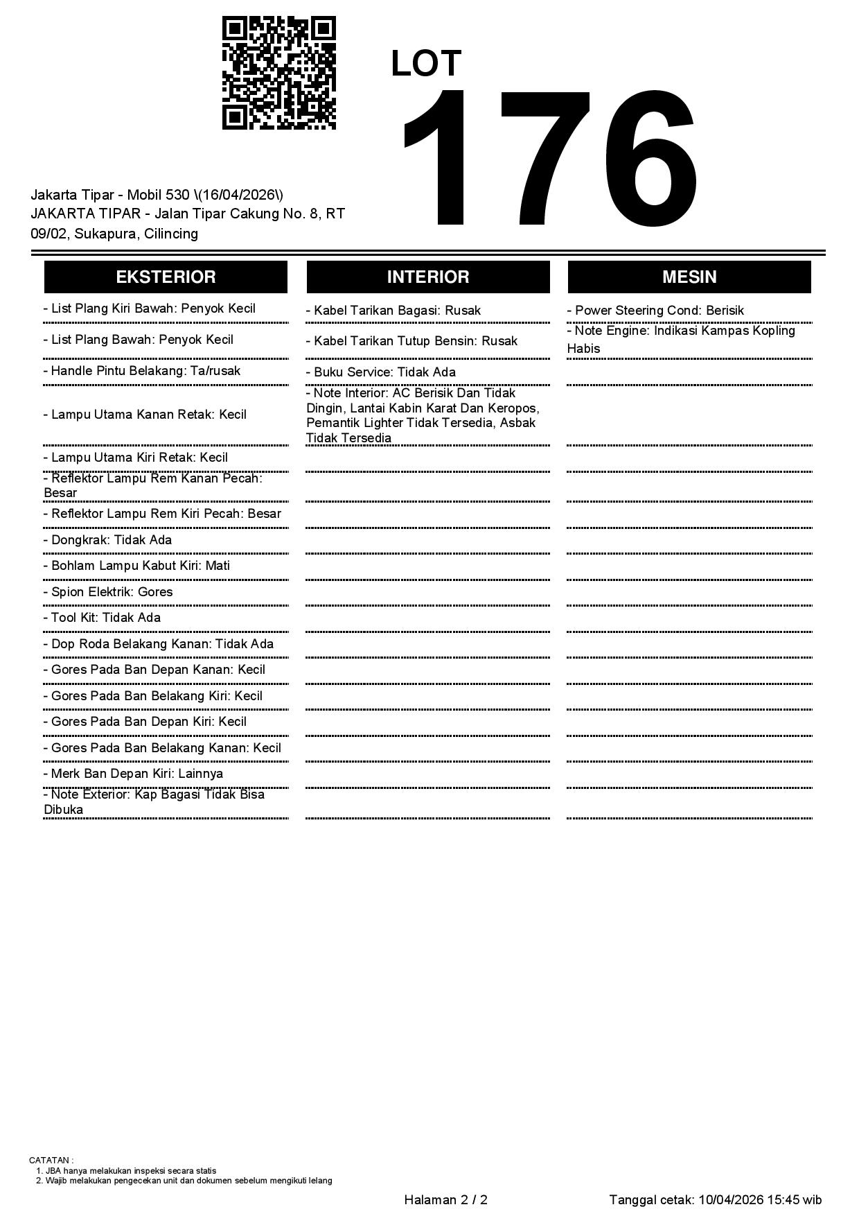 2. Peserta lelang wajib cek unit & dokumen