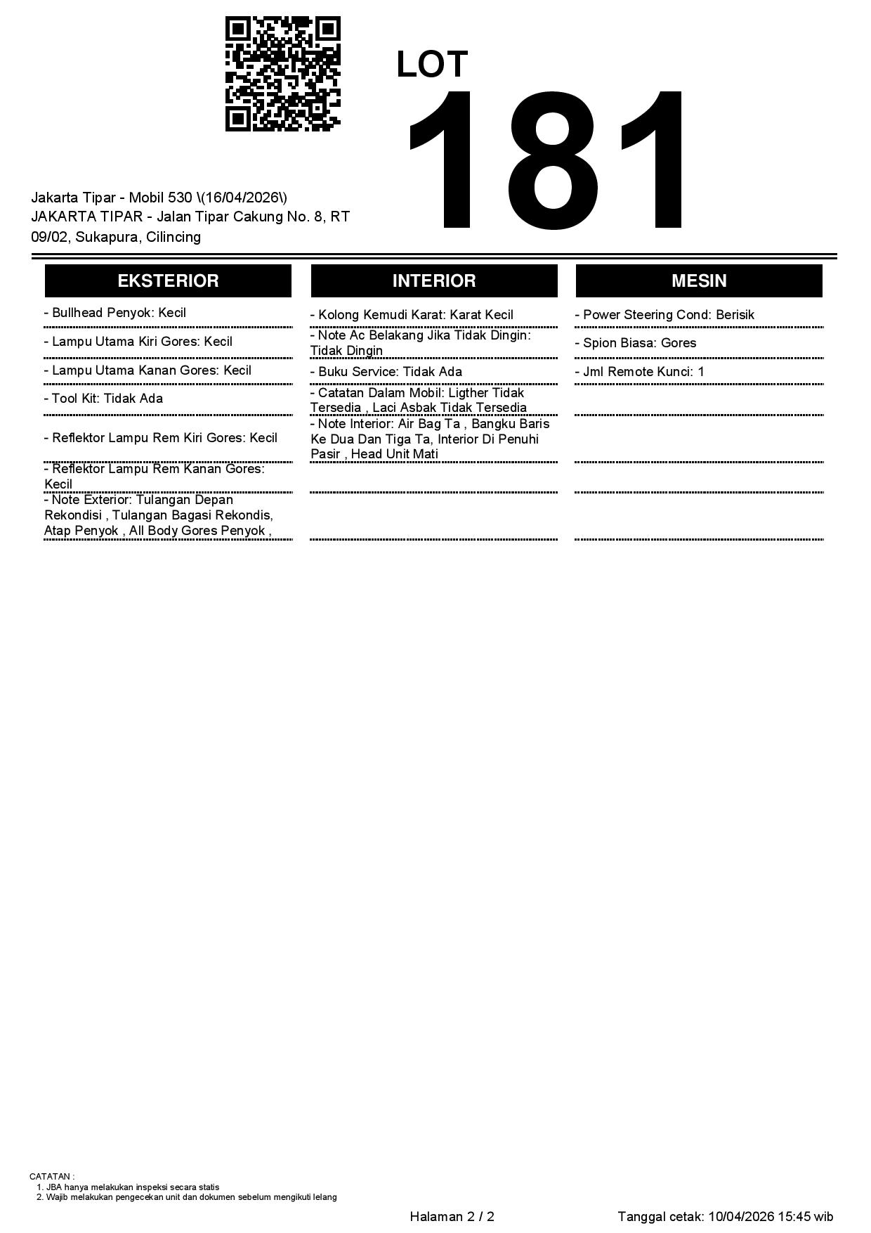 2. Peserta lelang wajib cek unit & dokumen