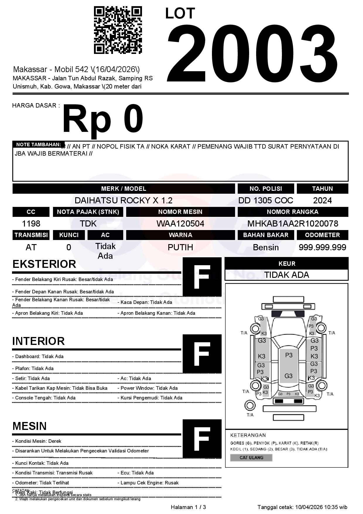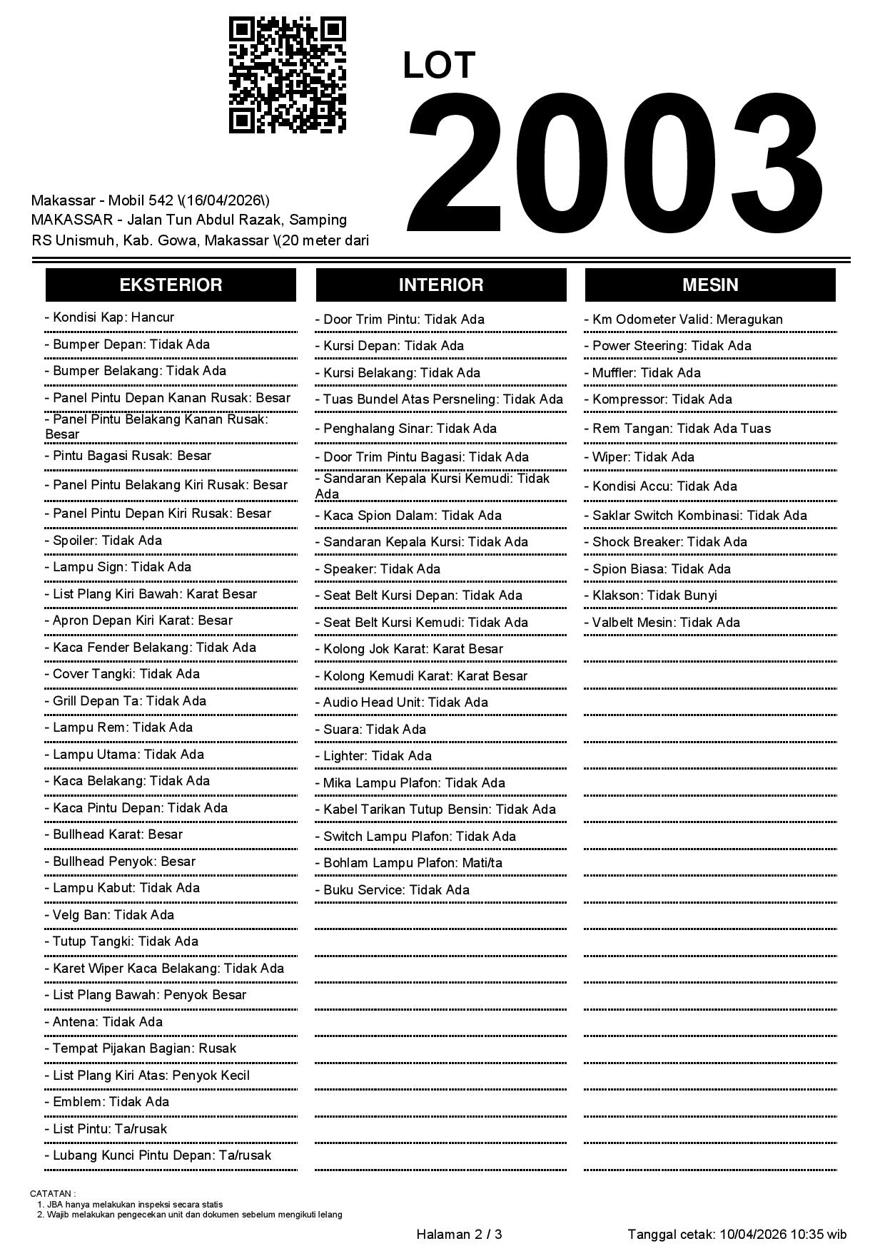 1. Peserta lelang wajib cek unit & dokumen