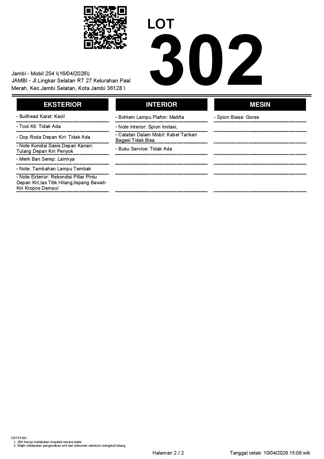 2. Peserta lelang wajib cek unit & dokumen