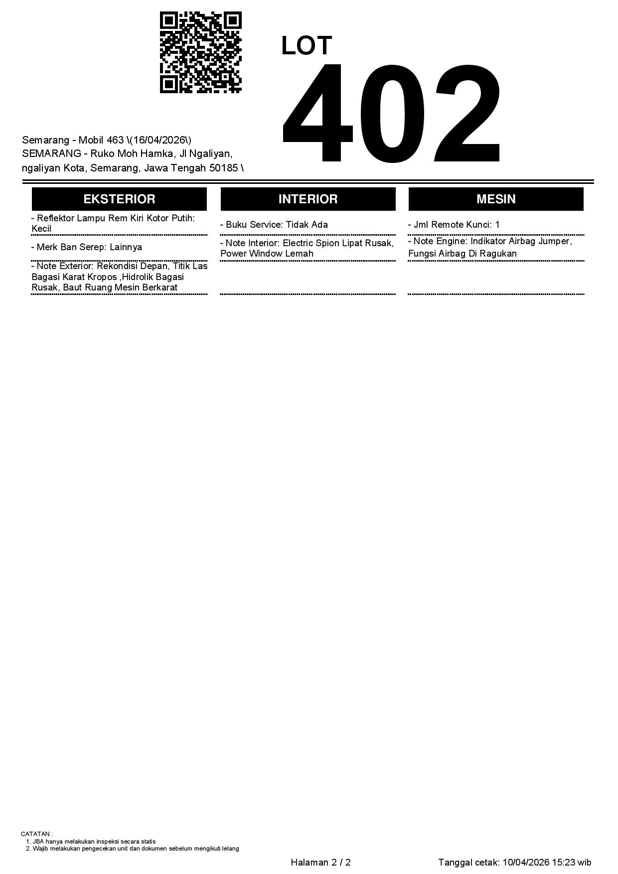 2. Peserta lelang wajib cek unit & dokumen