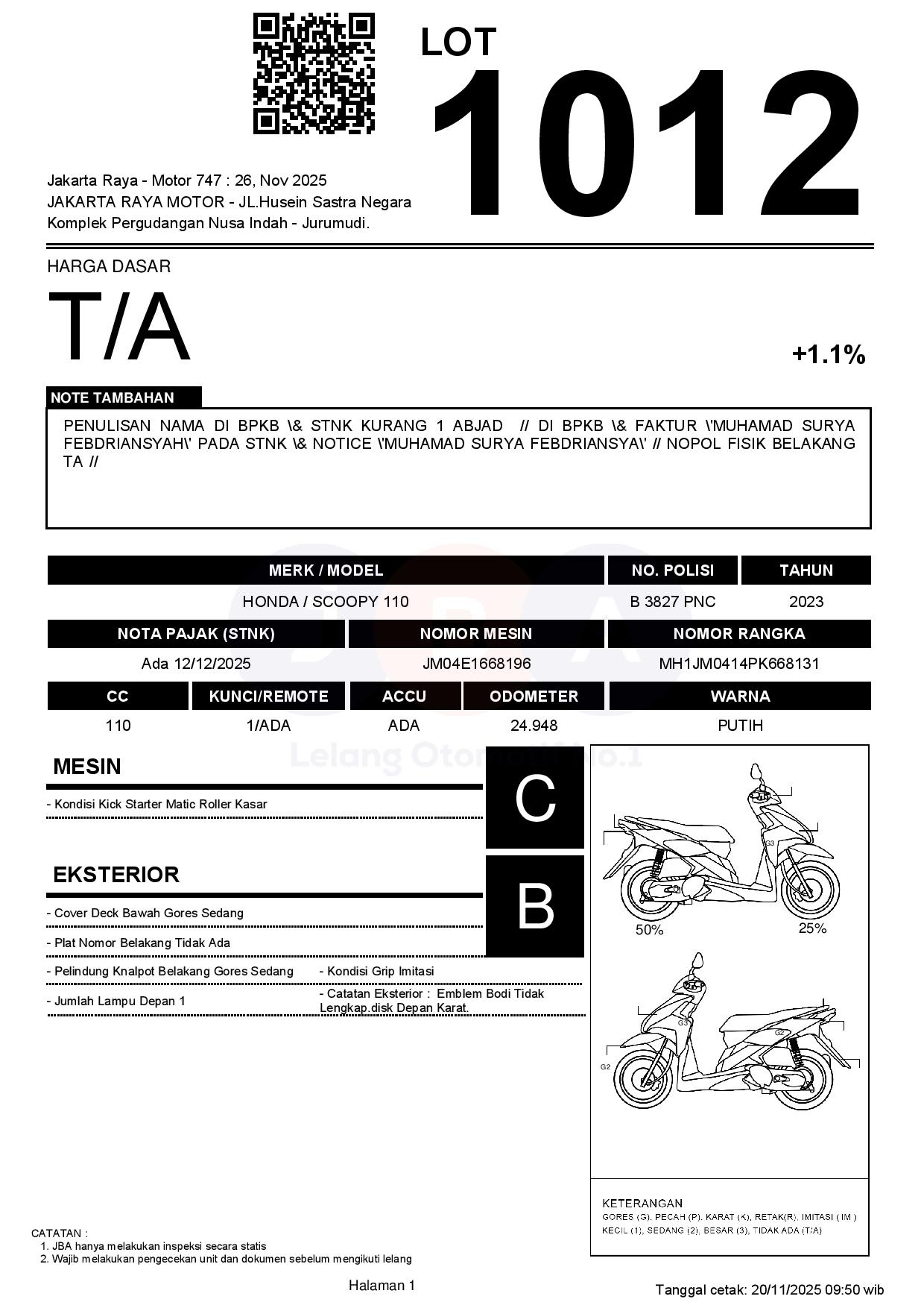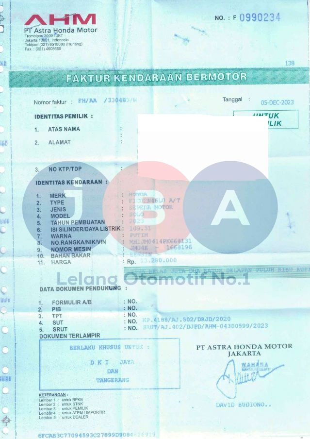 PENULISAN NAMA DI BPKB & STNK KURANG 1 ABJAD // DI BPKB & FAKTUR "MUHAMAD SURYA FEBDRIANSYAH" PADA STNK & NOTICE "MUHAMAD SURYA FEBDRIANSYA" // NOPOL FISIK BELAKANG TA //