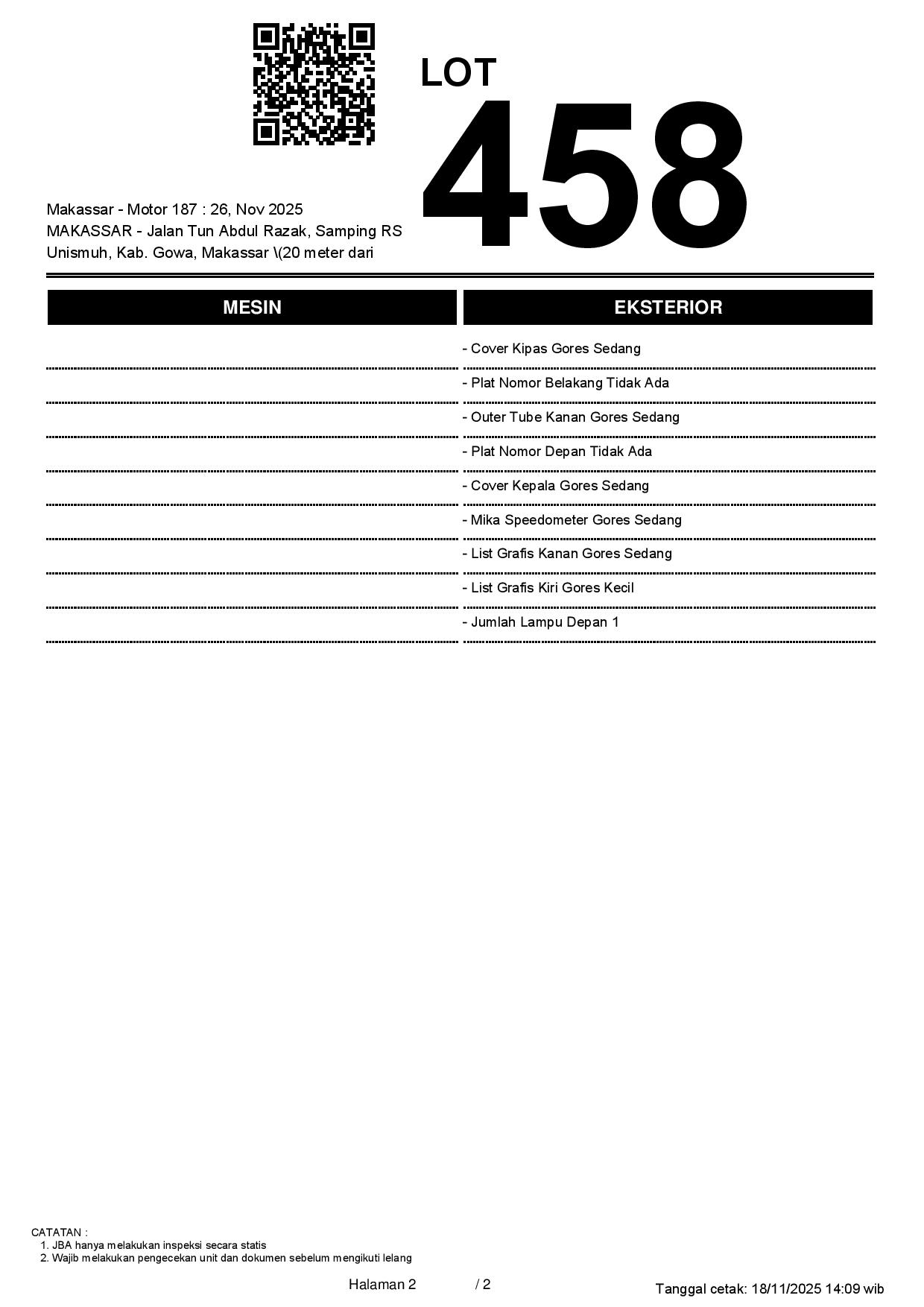 1. Peserta lelang wajib cek unit & dokumen