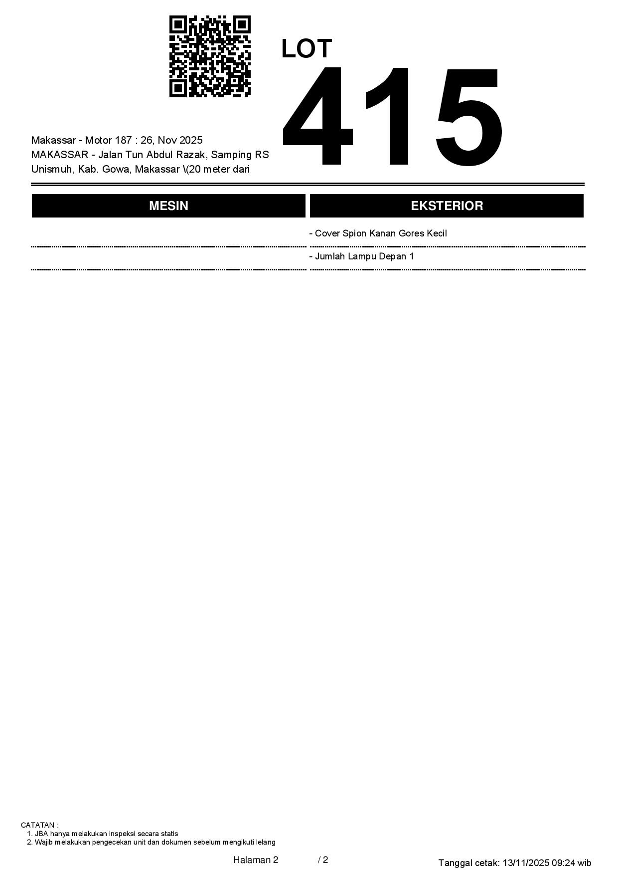 Tanggal Lelang: 26/11/2025 1:00 | WITA