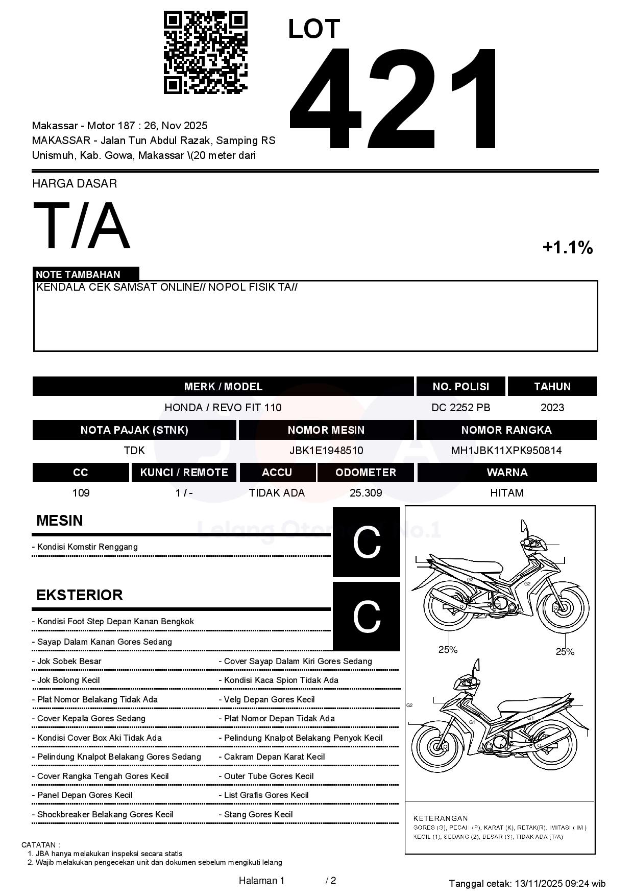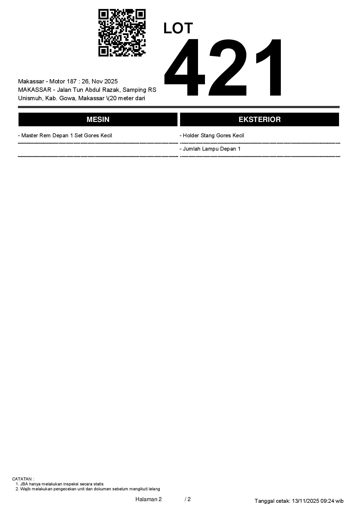 Tanggal Lelang: 26/11/2025 1:00 | WITA