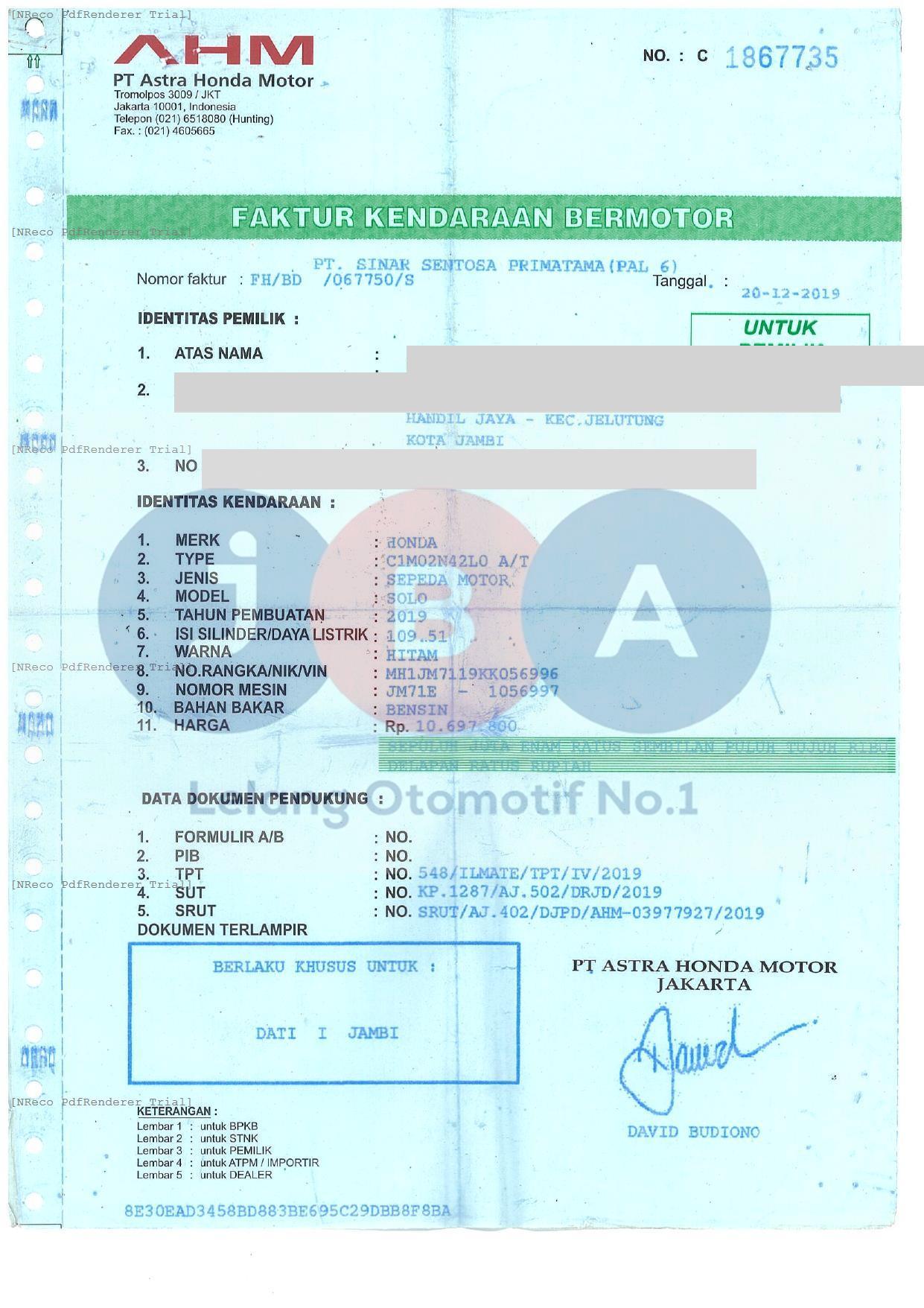 Nomor Rangka