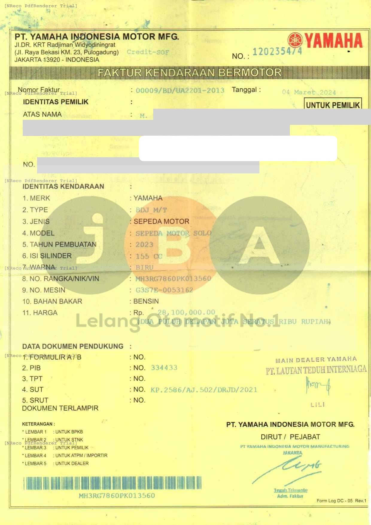 Nomor Rangka