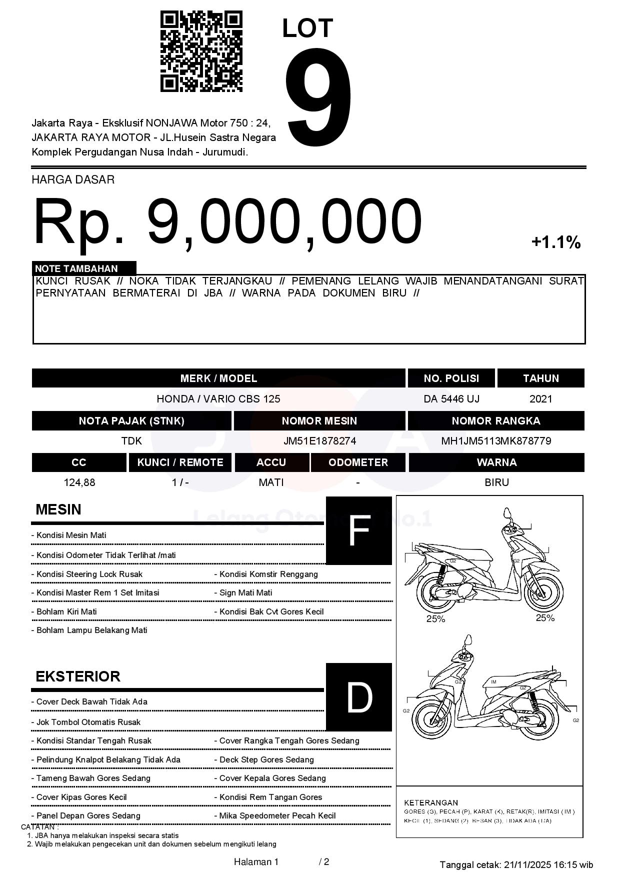 KUNCI RUSAK // NOKA TIDAK TERJANGKAU // PEMENANG LELANG WAJIB MENANDATANGANI SURAT PERNYATAAN BERMATERAI DI JBA // WARNA PADA DOKUMEN BIRU //
