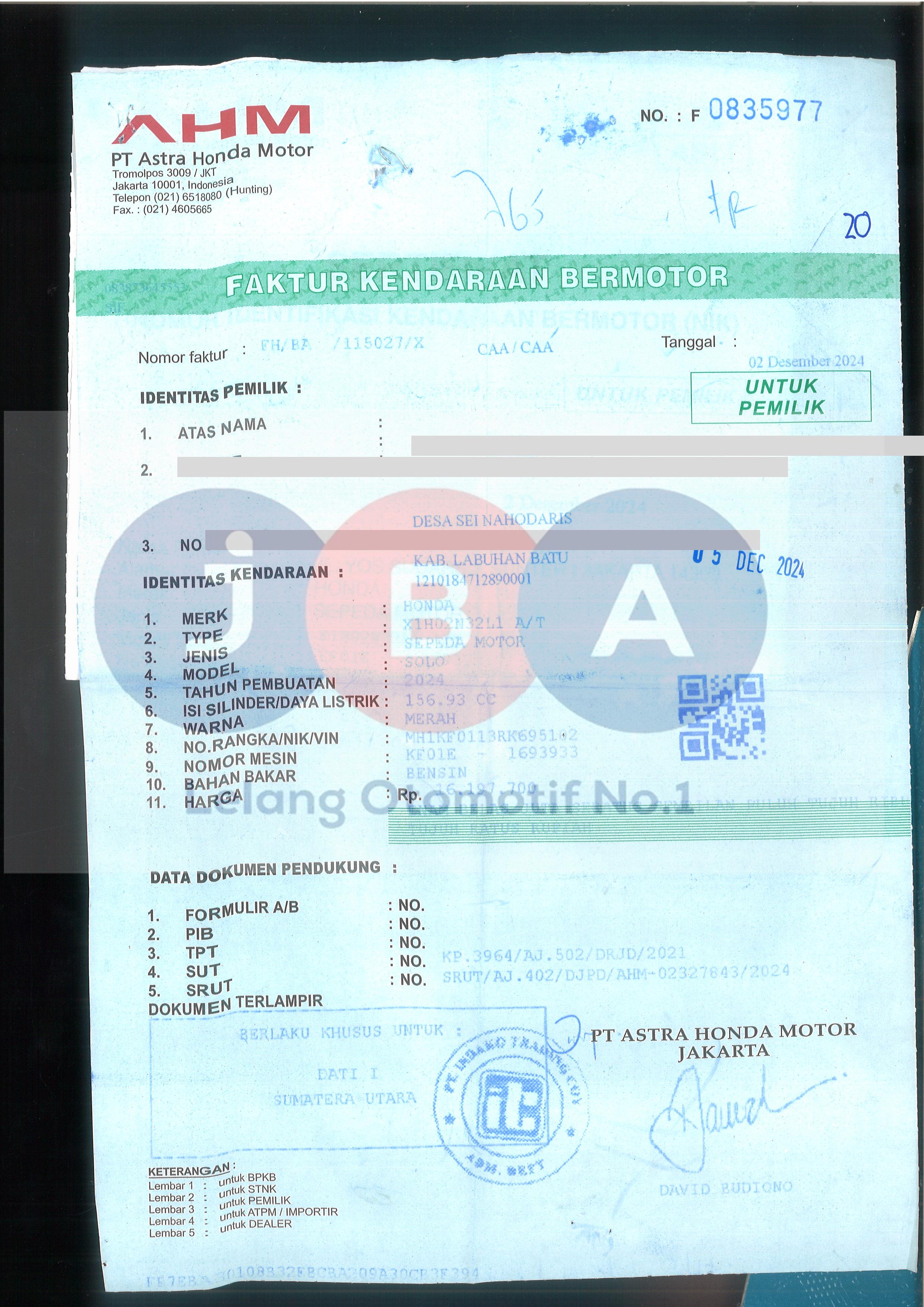 Nomor Rangka