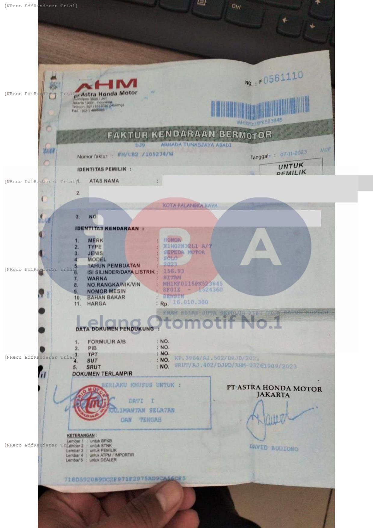Nomor Rangka