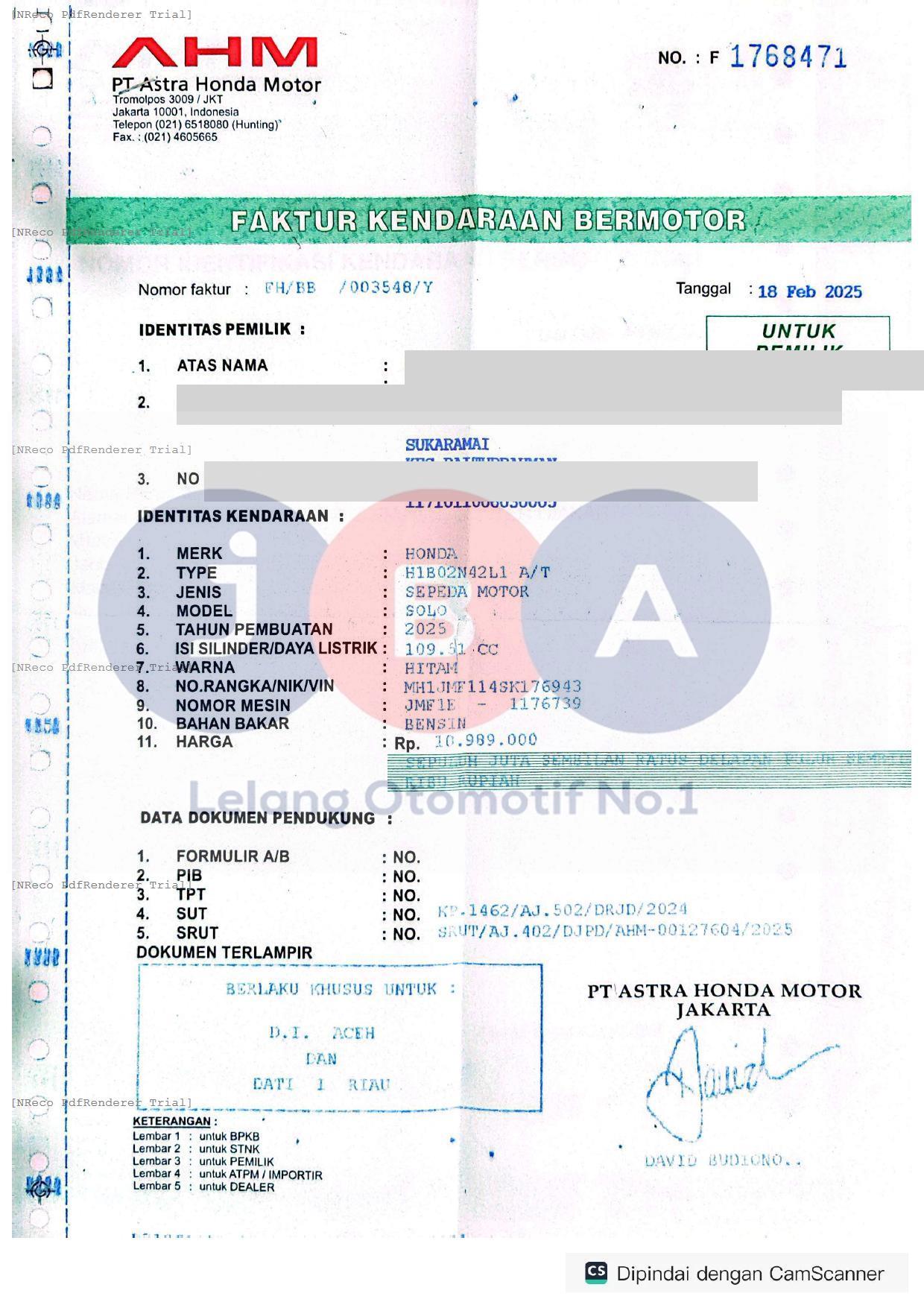 Nomor Rangka