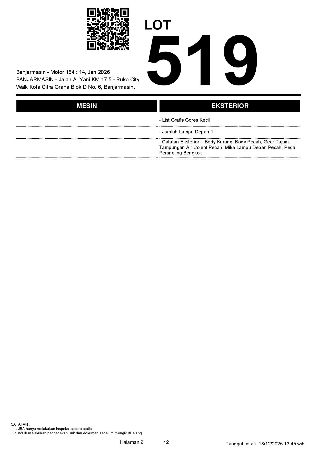 2. Peserta lelang wajib cek unit & dokumen