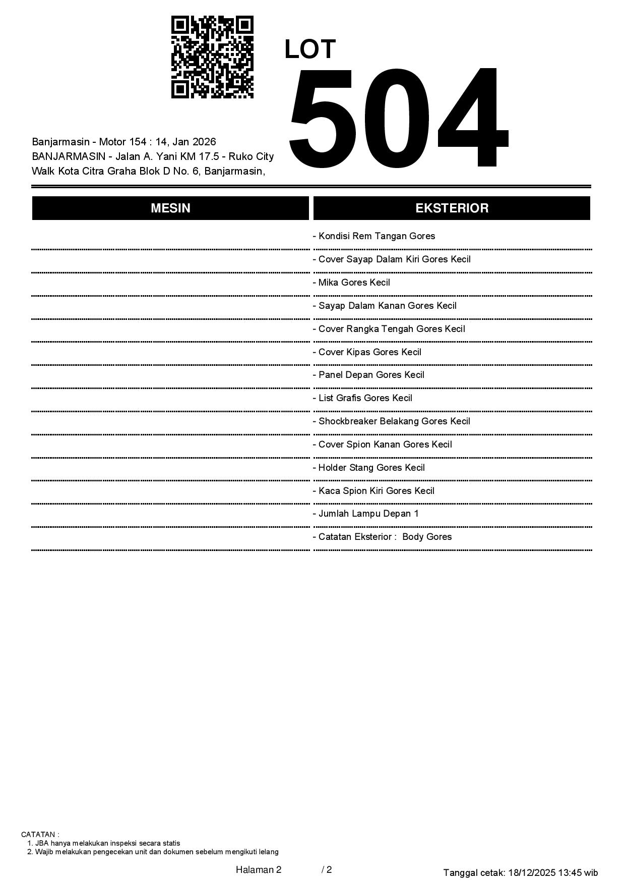 2. Peserta lelang wajib cek unit & dokumen