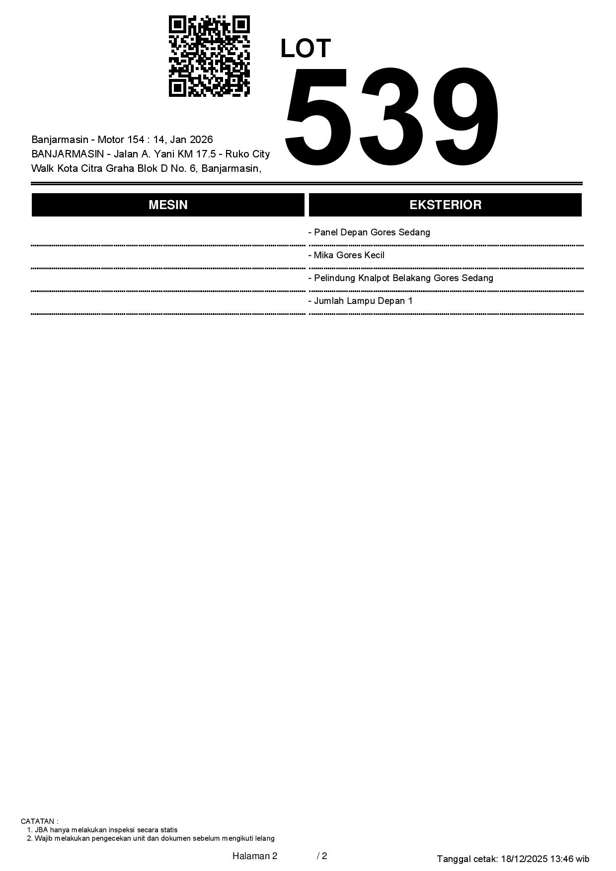 2. Peserta lelang wajib cek unit & dokumen