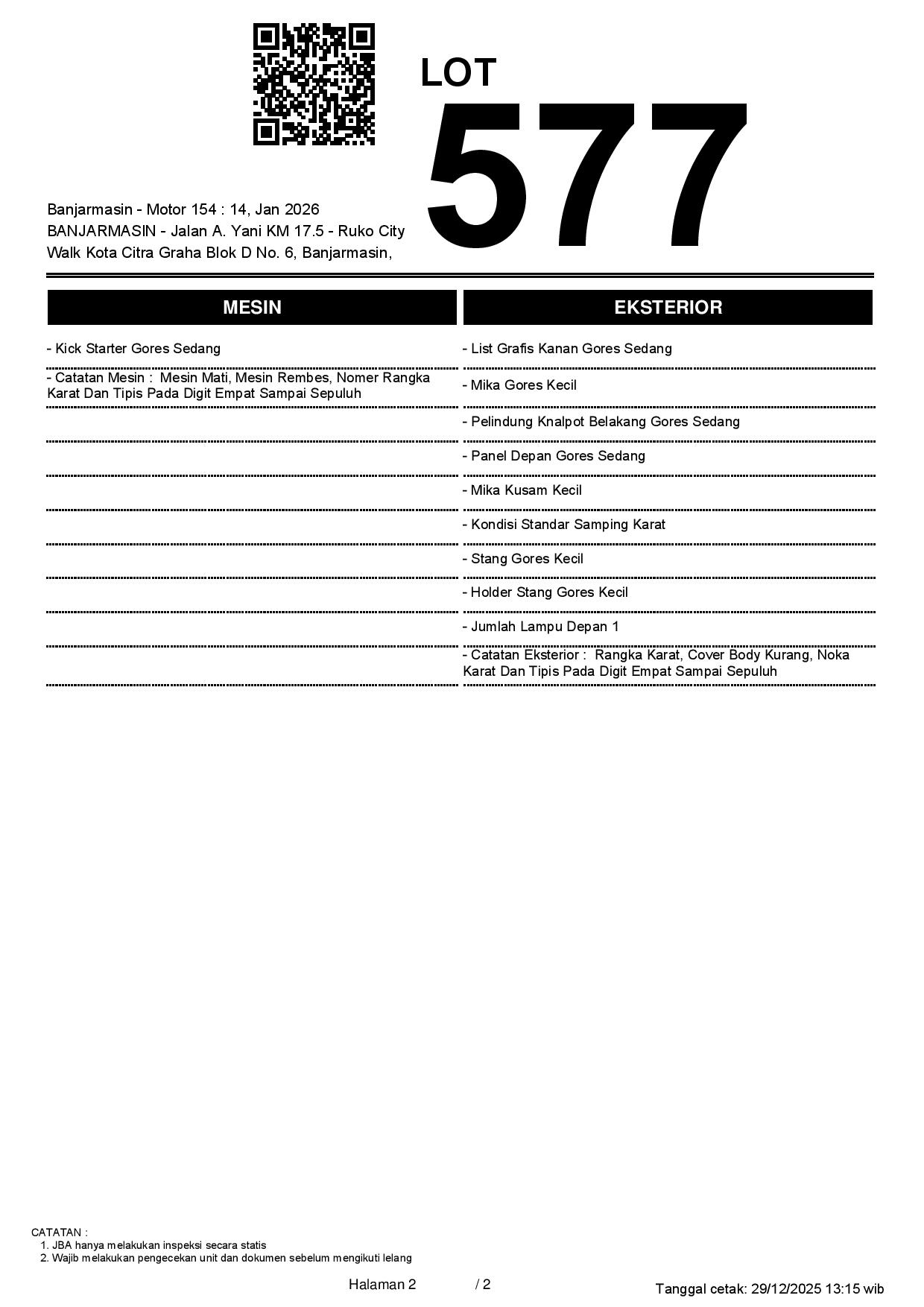 1. Peserta lelang wajib cek unit & dokumen