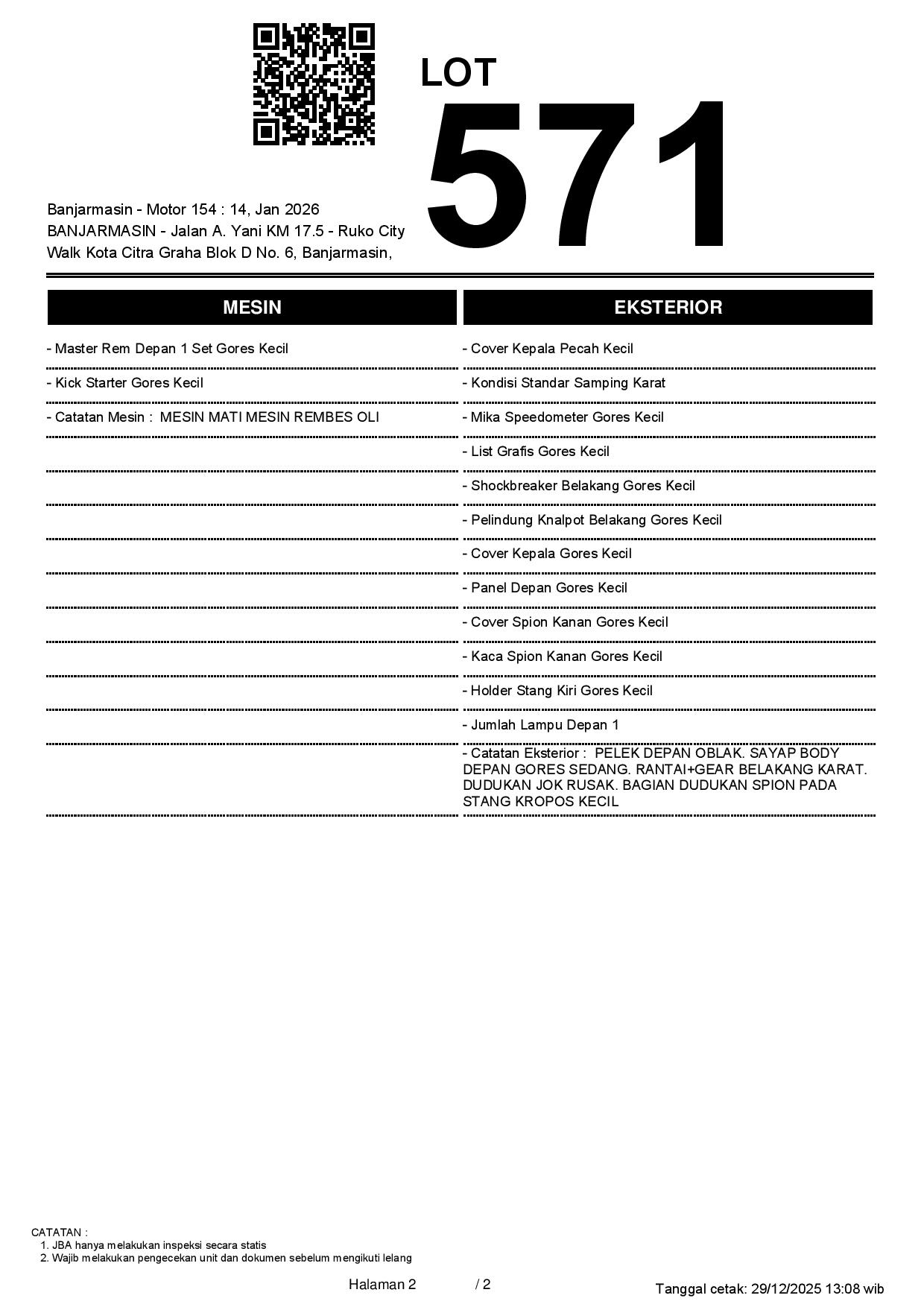 1. Peserta lelang wajib cek unit & dokumen