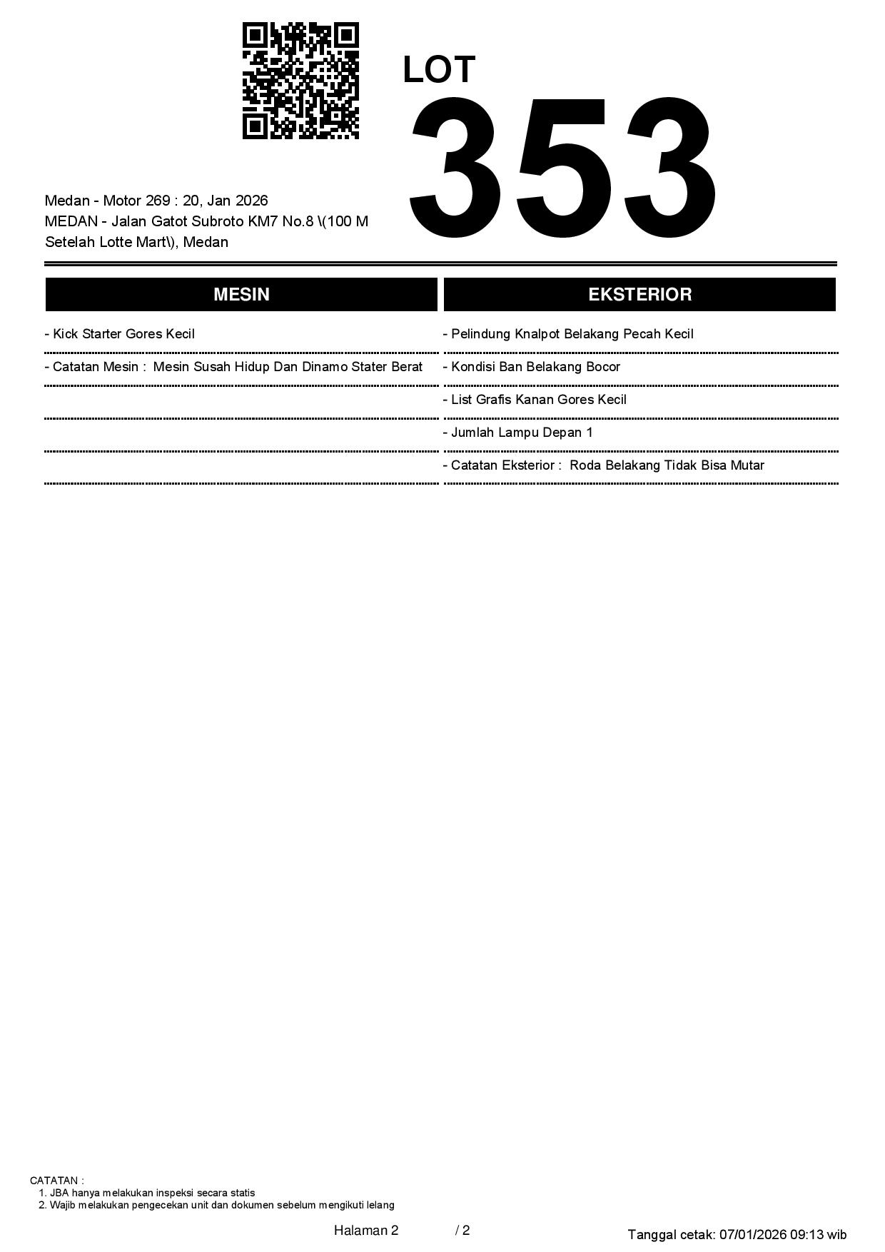 Tanggal Lelang: 20/01/2026 13:00 | WIB