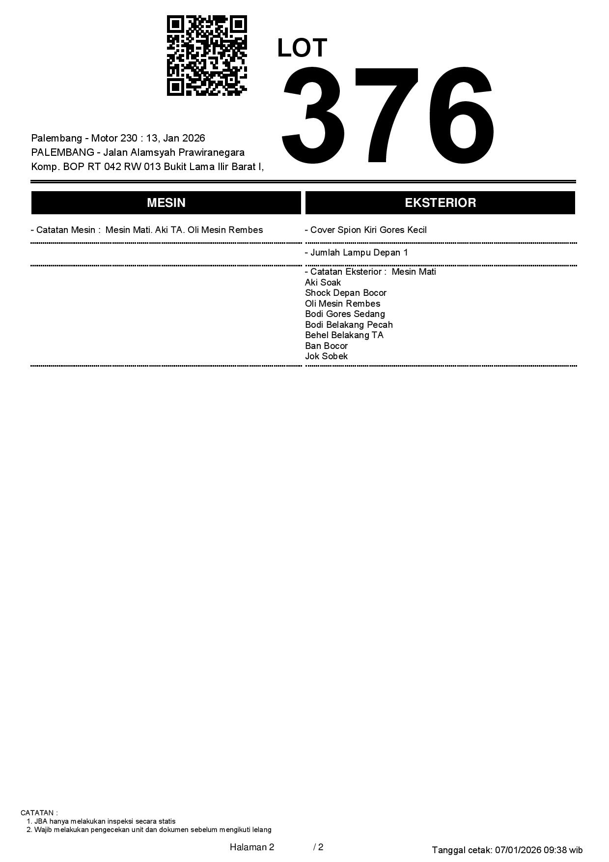 1. Peserta lelang wajib cek unit & dokumen
