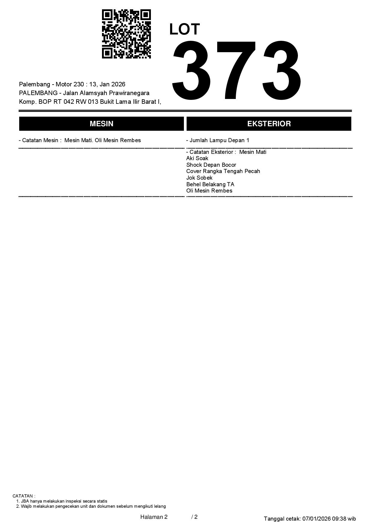 1. Peserta lelang wajib cek unit & dokumen