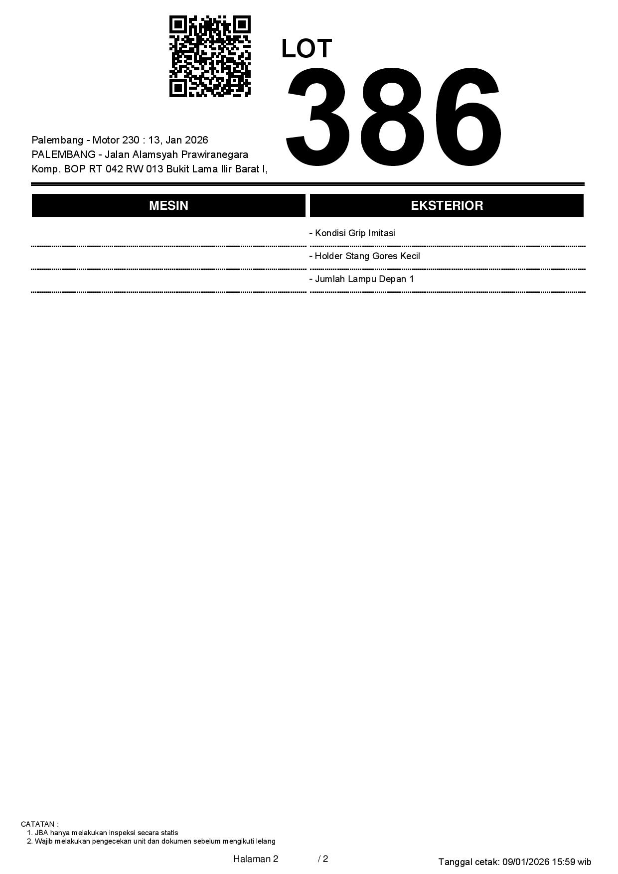 2. Peserta lelang wajib cek unit & dokumen