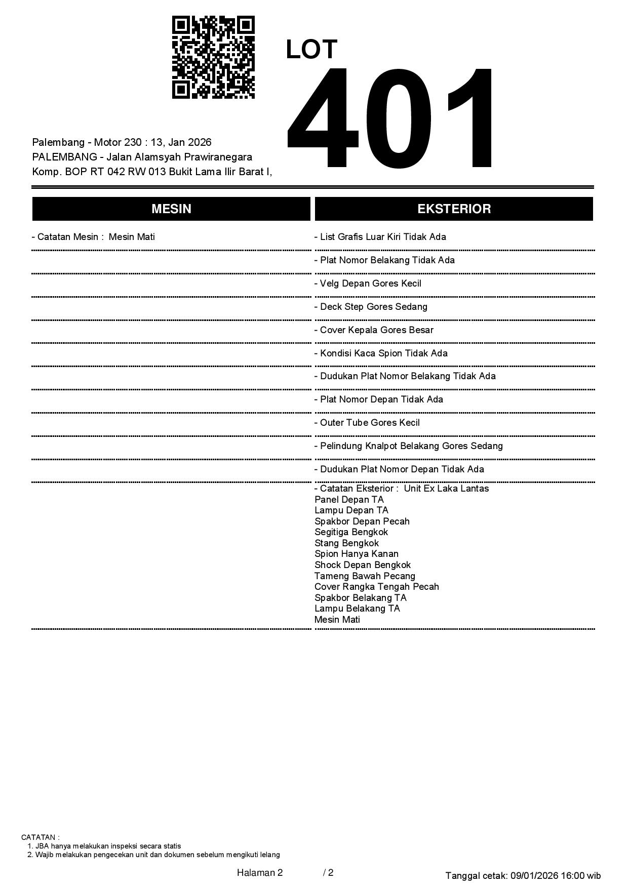 2. Peserta lelang wajib cek unit & dokumen