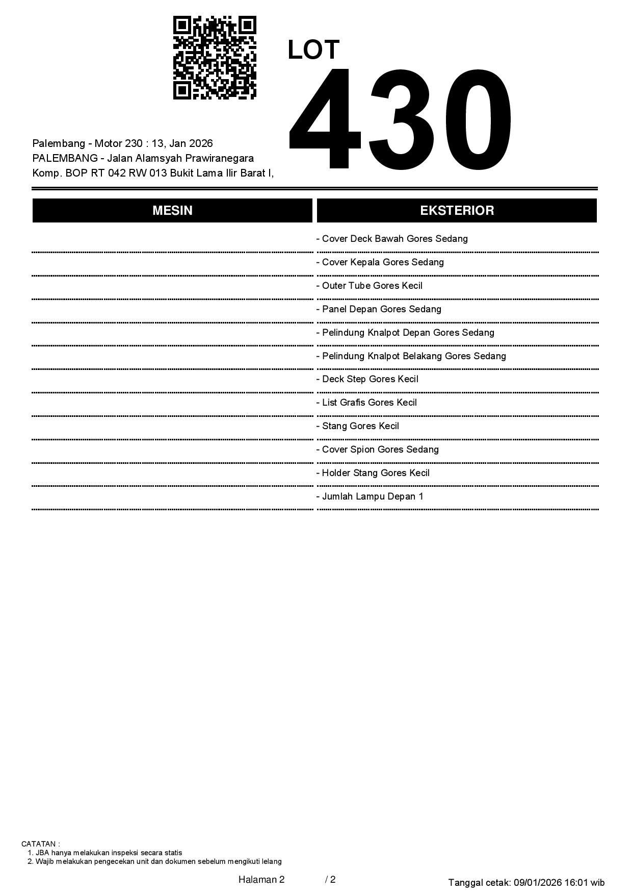 2. Peserta lelang wajib cek unit & dokumen