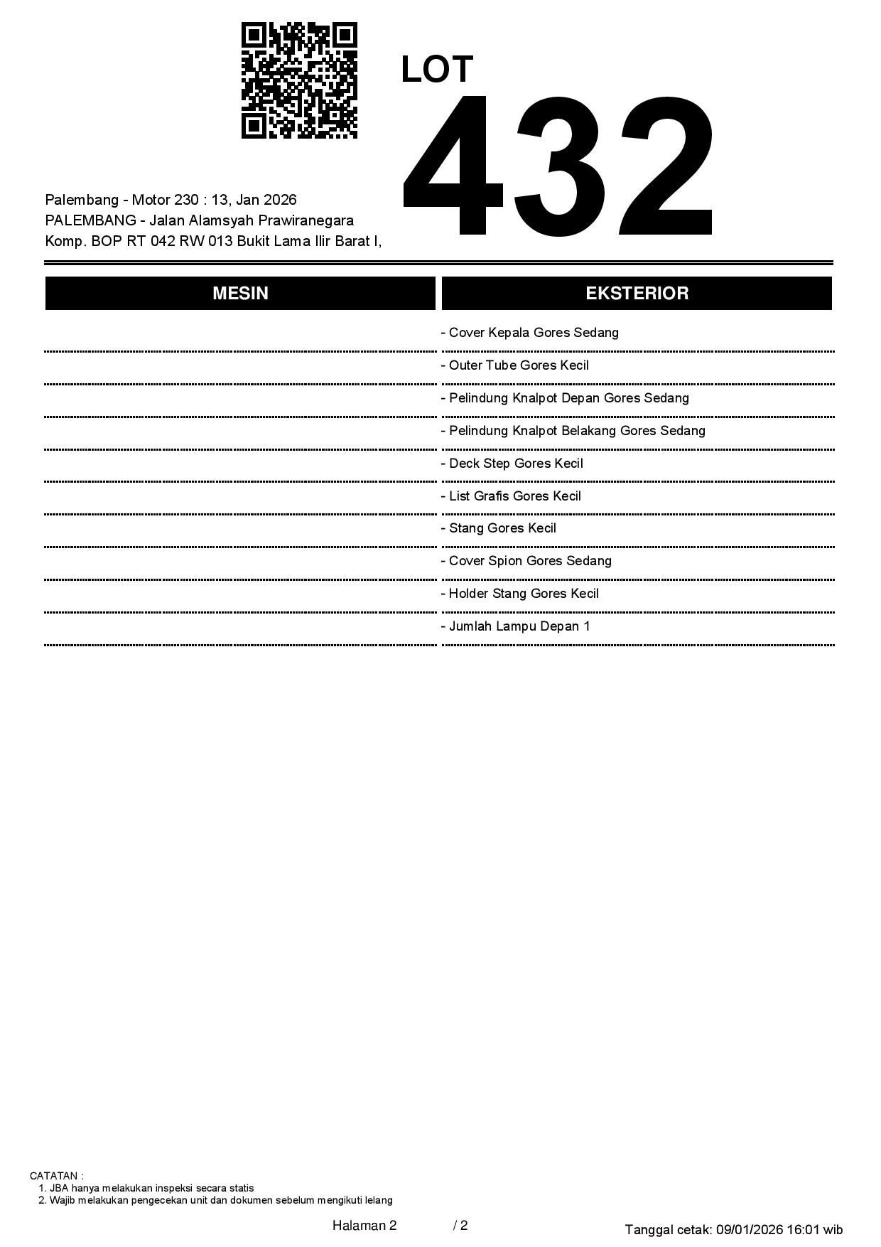 2. Peserta lelang wajib cek unit & dokumen