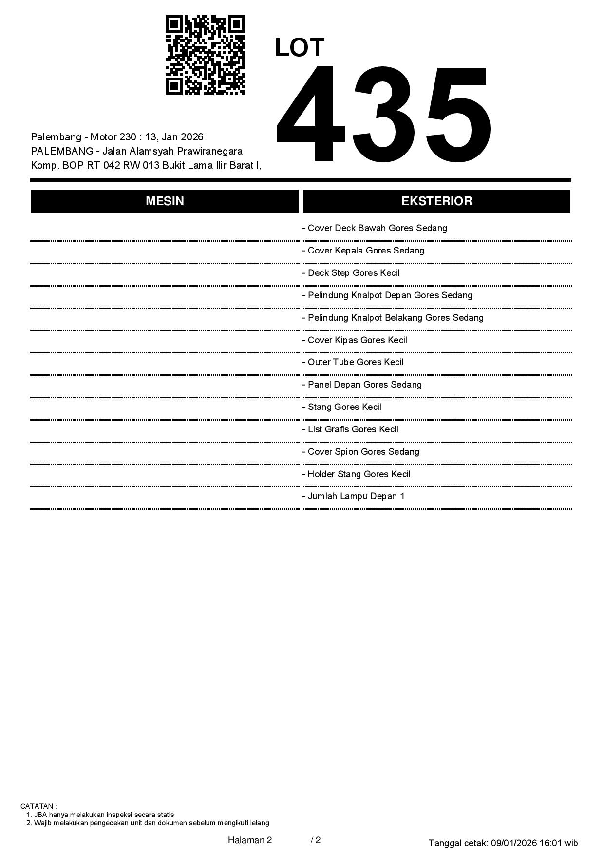2. Peserta lelang wajib cek unit & dokumen