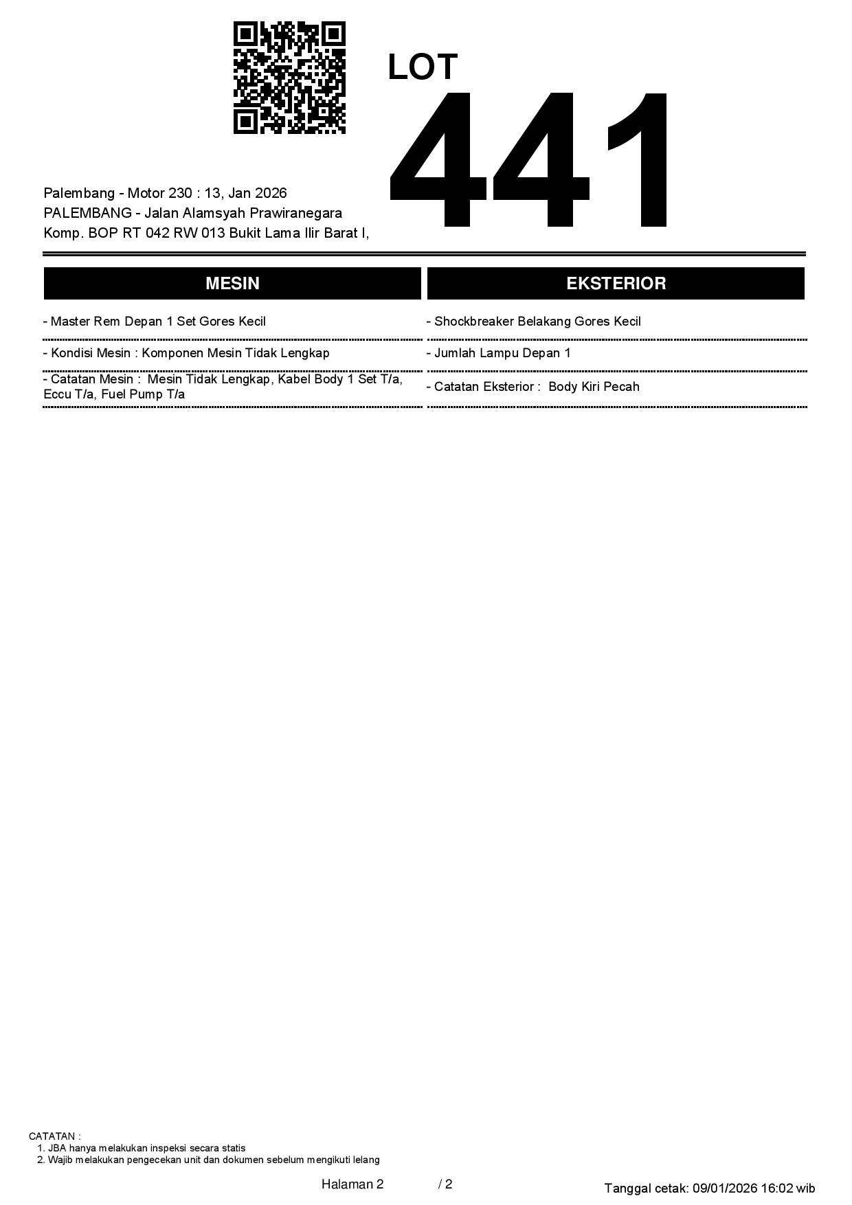 Tanggal Lelang: 13/01/2026 11:00 | WIB