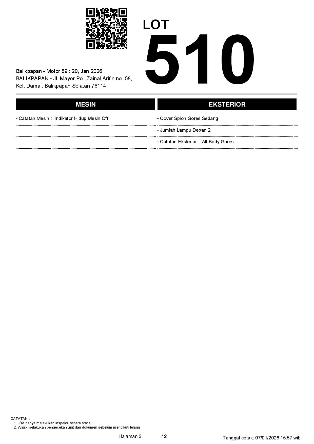 2. Peserta lelang wajib cek unit & dokumen