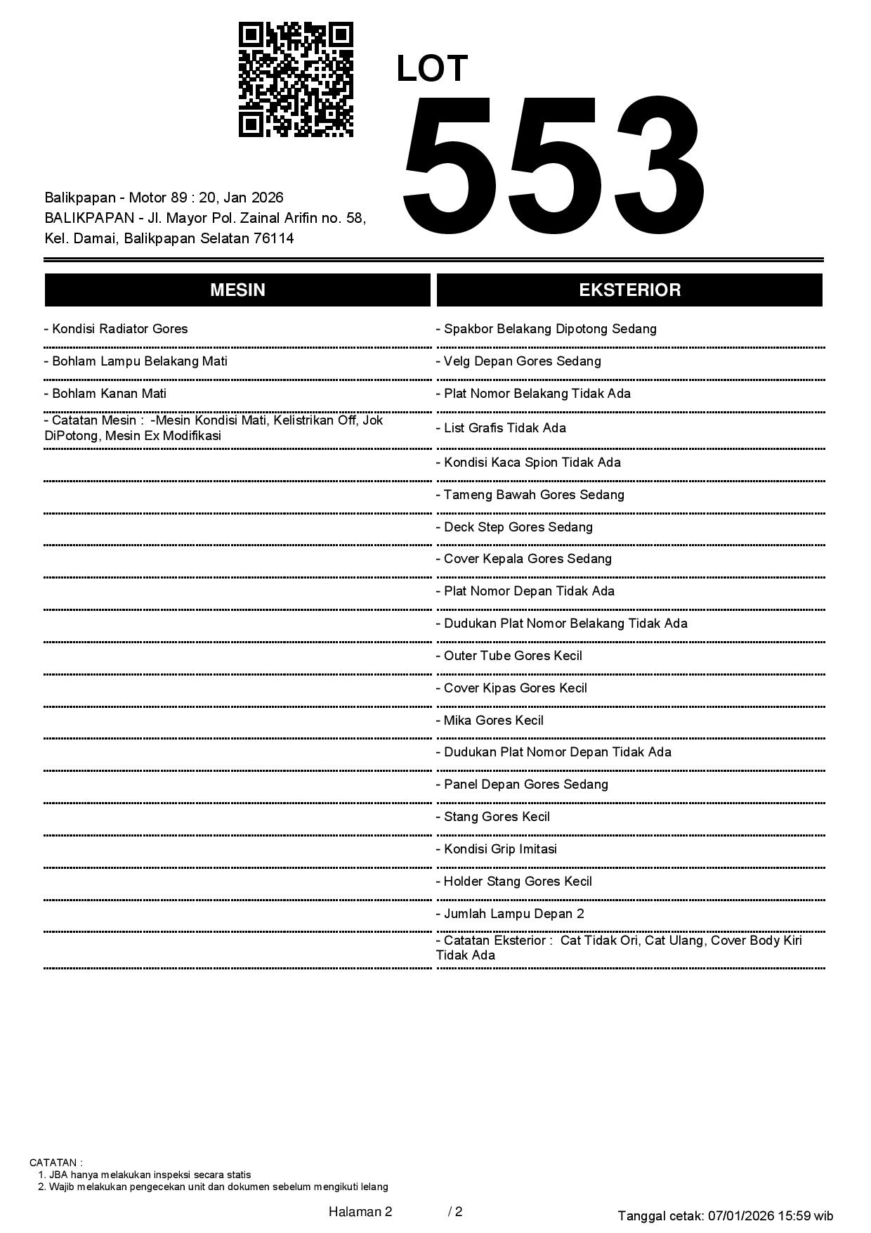 2. Peserta lelang wajib cek unit & dokumen