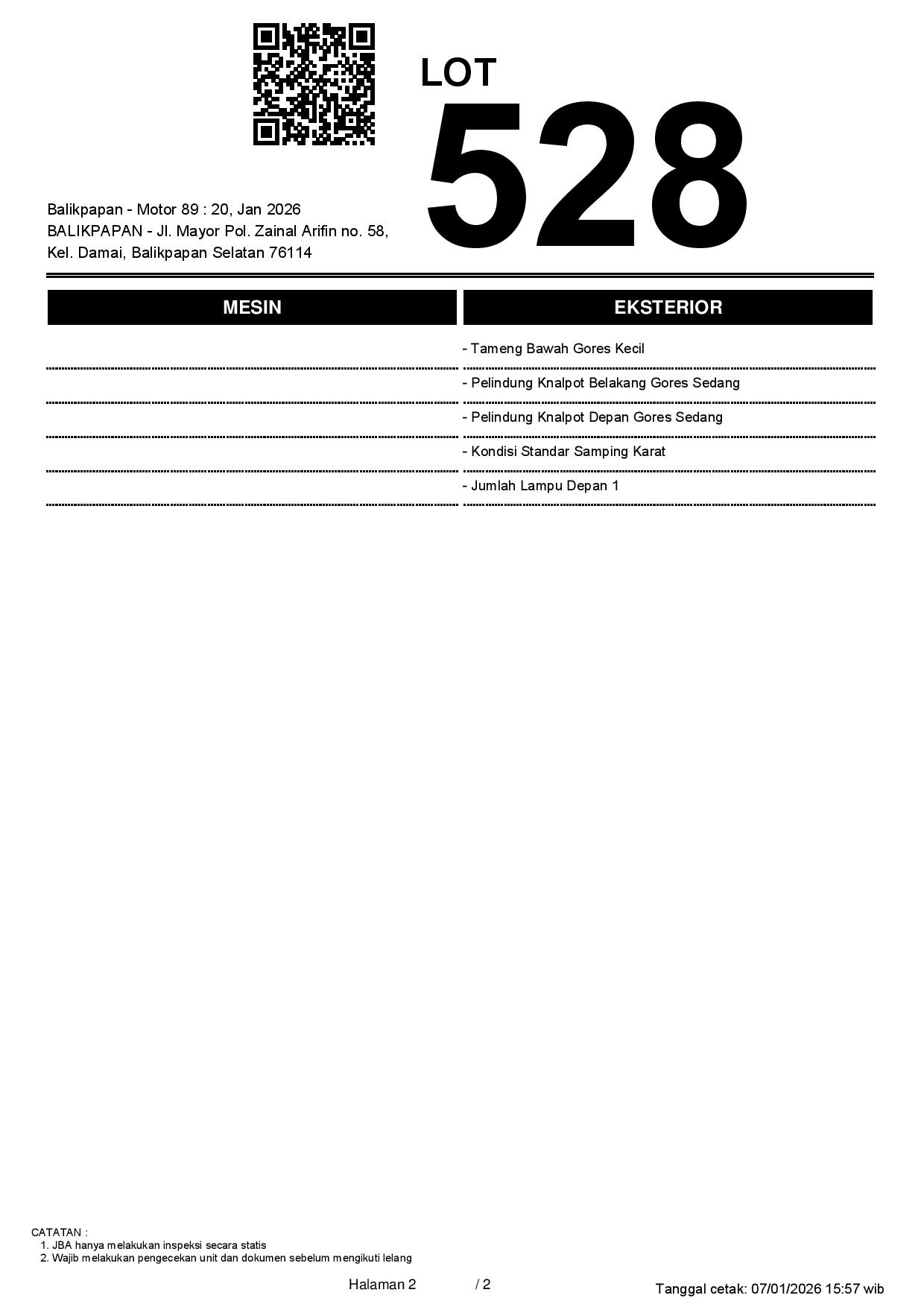 2. Peserta lelang wajib cek unit & dokumen