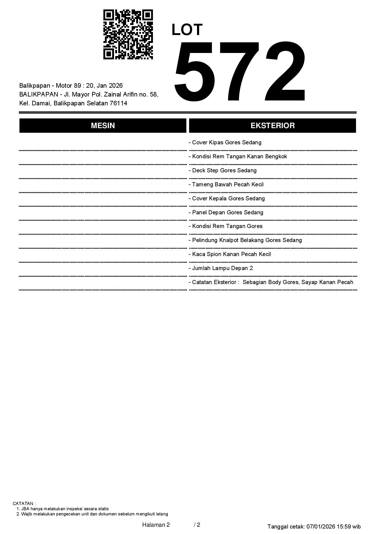 2. Peserta lelang wajib cek unit & dokumen
