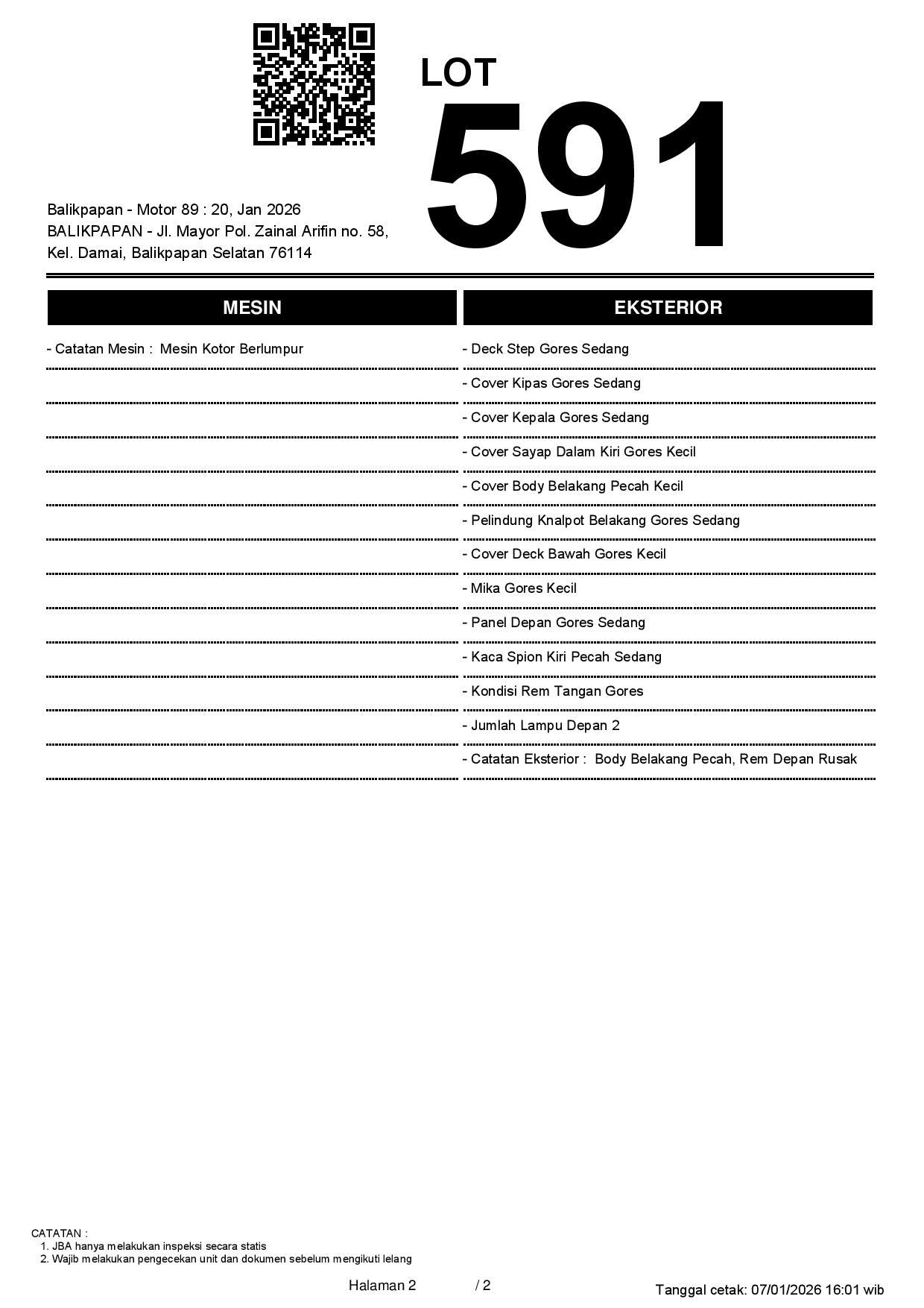 2. Peserta lelang wajib cek unit & dokumen
